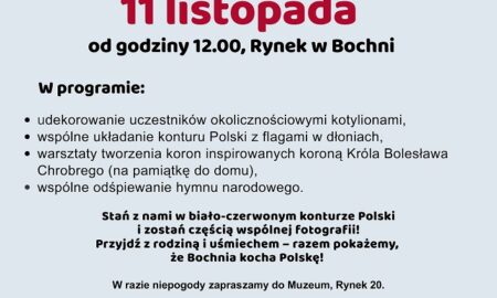 Stowarzyszenie „Kultura i Turystyka w Bochni” zaprasza 11 listopada od godz. 12.00 całe rodziny na radosne i twórcze obchody Święta Niepodległości w...