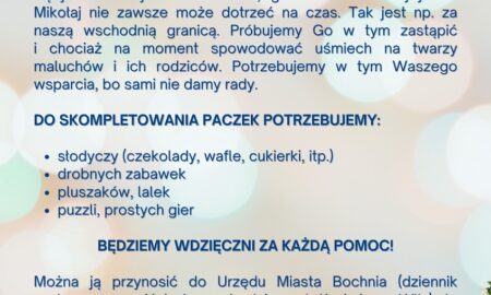 Już za trzy tygodnie przedstawiciele Stowarzyszenia „Wspólnota Bocheńska” jadą na Ukrainę. Chcą przekazać ponad 100 dzieciom z Czortkowa świąteczne paczki od Świętego...