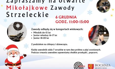 Klub Strzelecki „Promień Bochnia” zaprasza młodych miłośników strzelectwa oraz osoby, które chcą sprawdzić się z nowej aktywności na otwarte Mikołajkowe Zawody Strzeleckie,...
