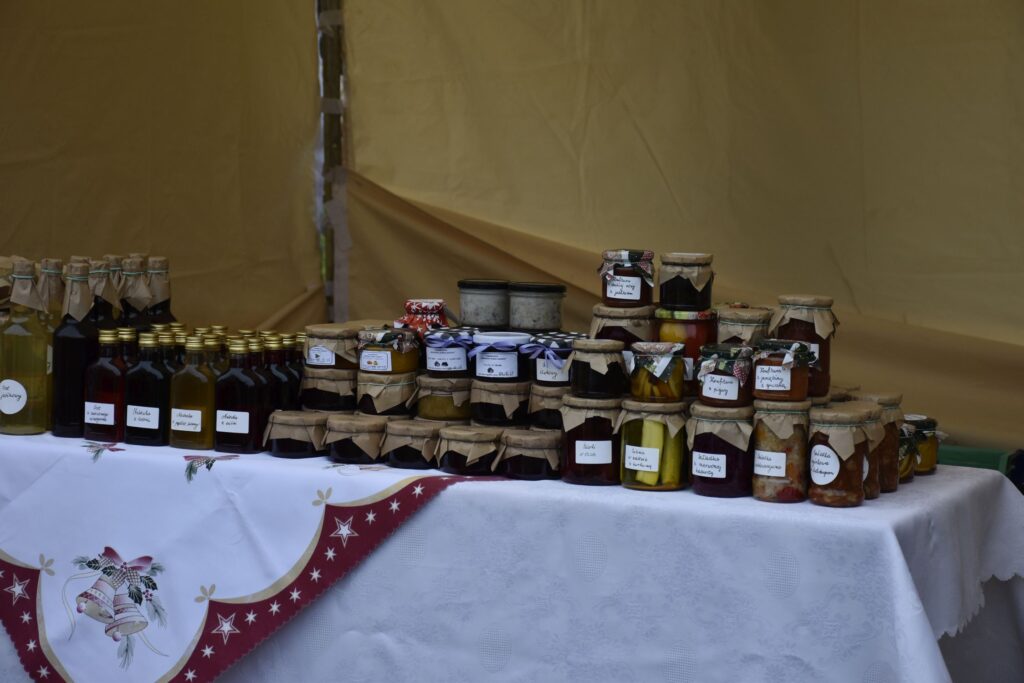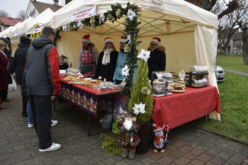 Na licznych stoiskach można było podziwiać oraz zaopatrzyć się w bożonarodzeniowe ozdoby, wyroby rękodzielnicze, choinki, wypieki oraz potrawy świąteczne. Tych ostatnich spróbować można było podczas przygotowanej przez koła gospodyń wiejskich degustacji.