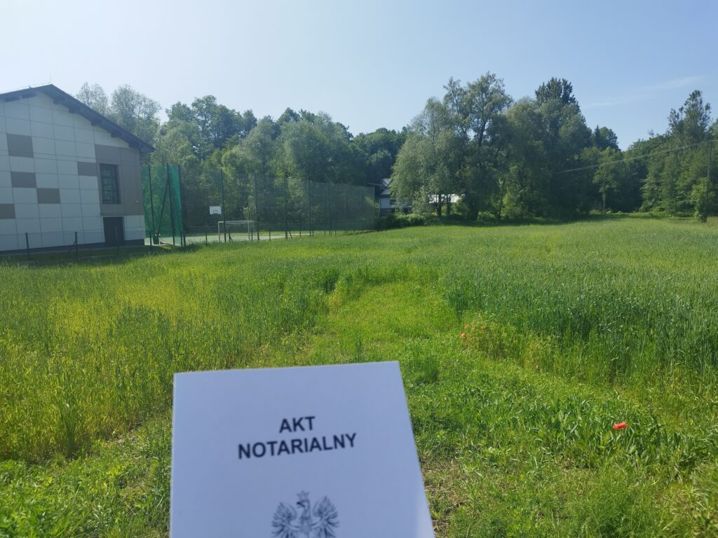 24 marca 2025 r. Wójt Gminy Trzcina podpisał akt notarialny dotyczący zakupu działki o pow. 45,77 a przy Orliku w celu poszerzenia strefy rekreacyjno- rozrywkowej.