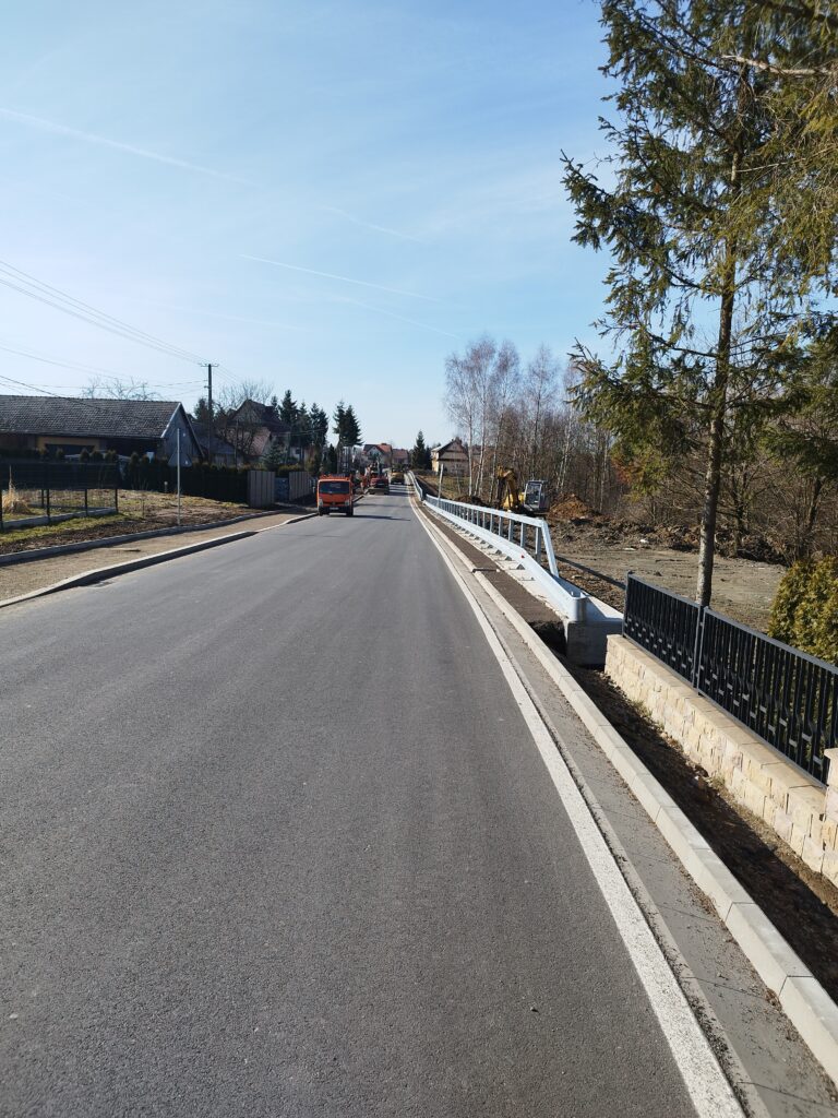 Wykonane zostały główne prace związane ze stabilizacją osuwiska oraz budową konstrukcji oporowej. Prowadzone są dalsze prace związane z kanalizacją deszczową oraz budową drogi i chodnika. Zadanie realizowane jest przez Powiat Bocheński i Powiatowy Zarząd Dróg przy udziale Gminy Trzciana. Wartość inwestycji to 7,5 mln zł, wkład z budżetu Gminy to 1 mln zł. Główny korpus osuwiska jest gotowy i zakończono układanie ostatniej warstwy asfaltu. Następnie będą wykonywane prace wykończeniowe, m.in. chodnik od zakładu Szaty Liturgiczne do szkoły.