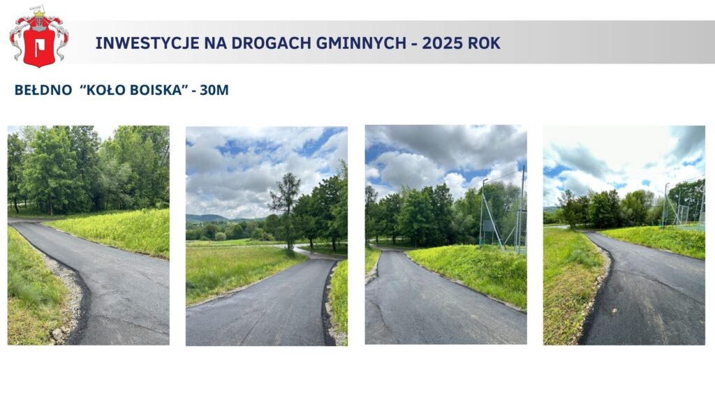 W listopadzie odebrano kolejną ważną inwestycję: remont drogi gminnej nr 580402K, tzw. „Cmentarnej”. Na realizację zadania gmina otrzymała dofinansowanie w wysokości 298 tys. zł z Rządowego Funduszu Rozwoju Dróg. Droga ma duże znaczenie dla mieszkańców, ponieważ prowadzi do cmentarza parafialnego oraz stadionu KS Beskid, a także stanowi alternatywny dojazd do Nowej Wsi i Bełdna. Łączny koszt inwestycji wyniósł 469 201,95 zł, w tym: 298 025,00 zł – środki z Rządowego Funduszu Rozwoju Dróg, 171 176,95 zł – środki własne gminy.