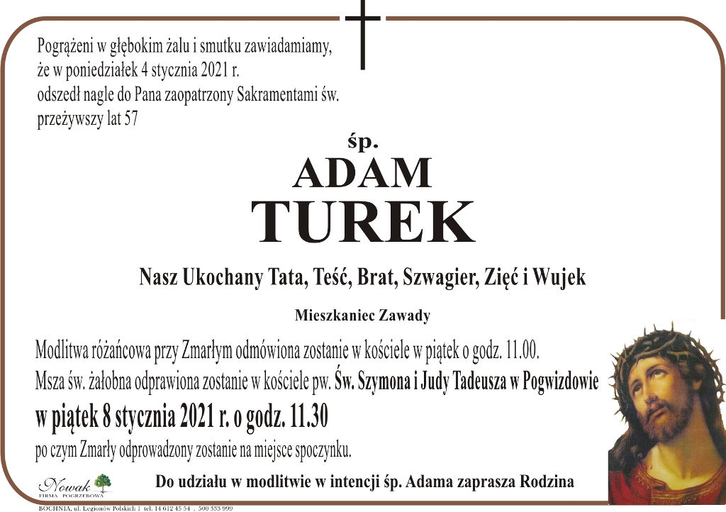 ś.p. Adam Turek Małgorzata Więcek-Cebula Dodano 05 stycznia 2021 21:31 Share Tweet Share Share Email Komentarzy - REKLAMA - Tagi: Share Tweet Share Share Email - REKLAMA -