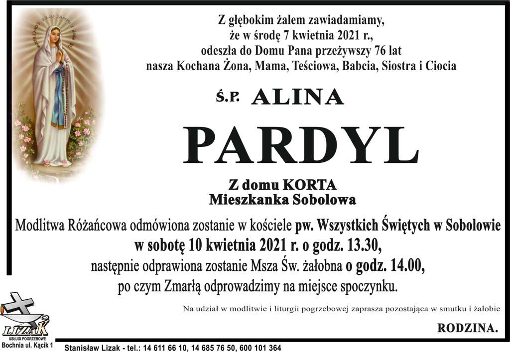 ś.p. Alina Pardyl Małgorzata Więcek-Cebula Dodano 08 kwietnia 2021 17:33 Share Tweet Share Share Email Komentarzy Tagi: Share Tweet Share Share Email - REKLAMA -