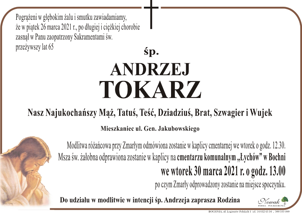 ś.p. Andrzej Tokarz Małgorzata Więcek-Cebula Dodano 29 marca 2021 11:45 Share Tweet Share Share Email Komentarzy Tagi: Share Tweet Share Share Email - REKLAMA -