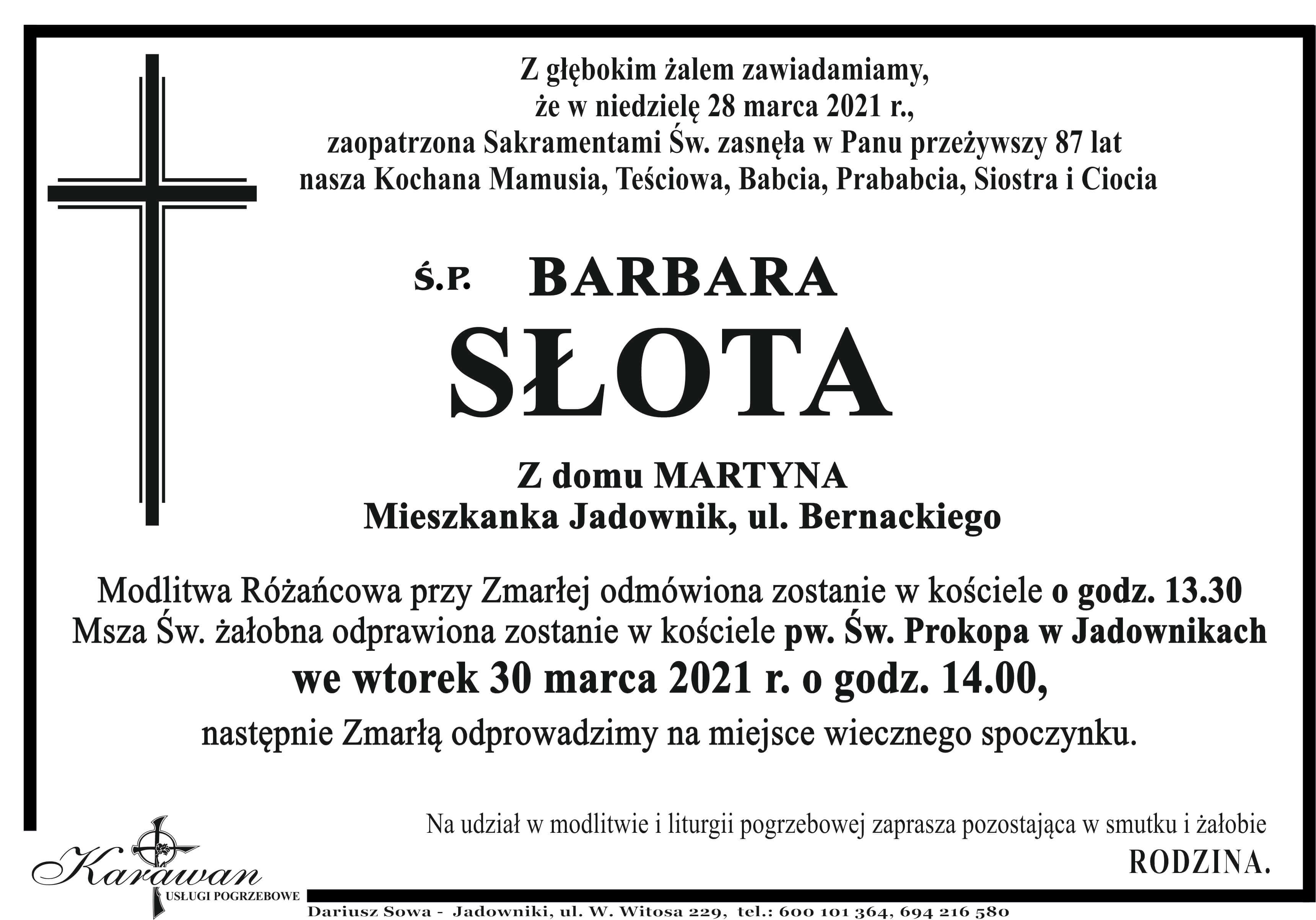 ś.p. Barbara Słota Małgorzata Więcek-Cebula Dodano 28 marca 2021 17:05 Share Tweet Share Share Email Komentarzy Tagi: Share Tweet Share Share Email - REKLAMA -