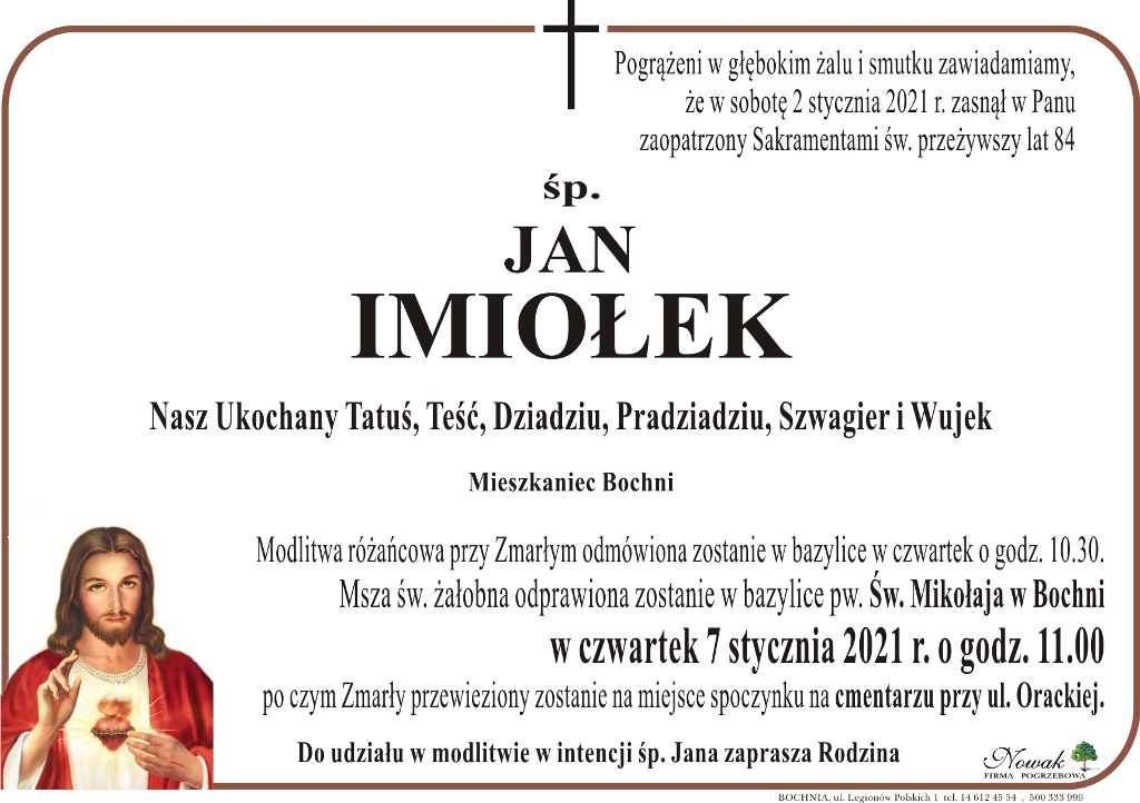ś.p. Jan Imiołek Małgorzata Więcek-Cebula Dodano 05 stycznia 2021 21:32 Share Tweet Share Share Email Komentarzy - REKLAMA - Tagi: Share Tweet Share Share Email - REKLAMA -