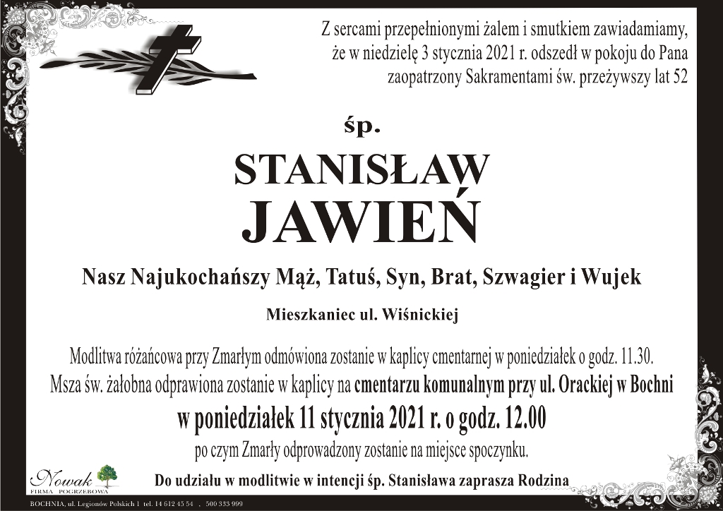 ś.p. Stanisław Jawień Małgorzata Więcek-Cebula Dodano 05 stycznia 2021 21:32 Share Tweet Share Share Email Komentarzy - REKLAMA - Tagi: Share Tweet Share Share Email - REKLAMA -