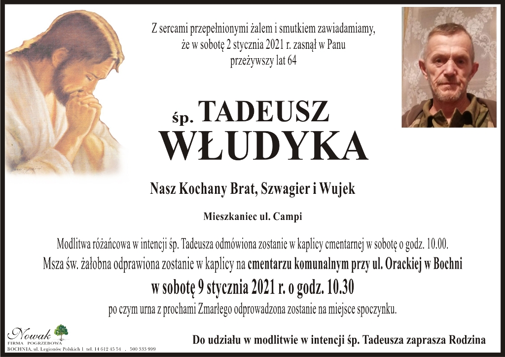 ś.p. Tadeusz Włudyka Małgorzata Więcek-Cebula Dodano 04 stycznia 2021 18:47 Share Tweet Share Share Email Komentarzy - REKLAMA - Tagi: Share Tweet Share Share Email - REKLAMA -