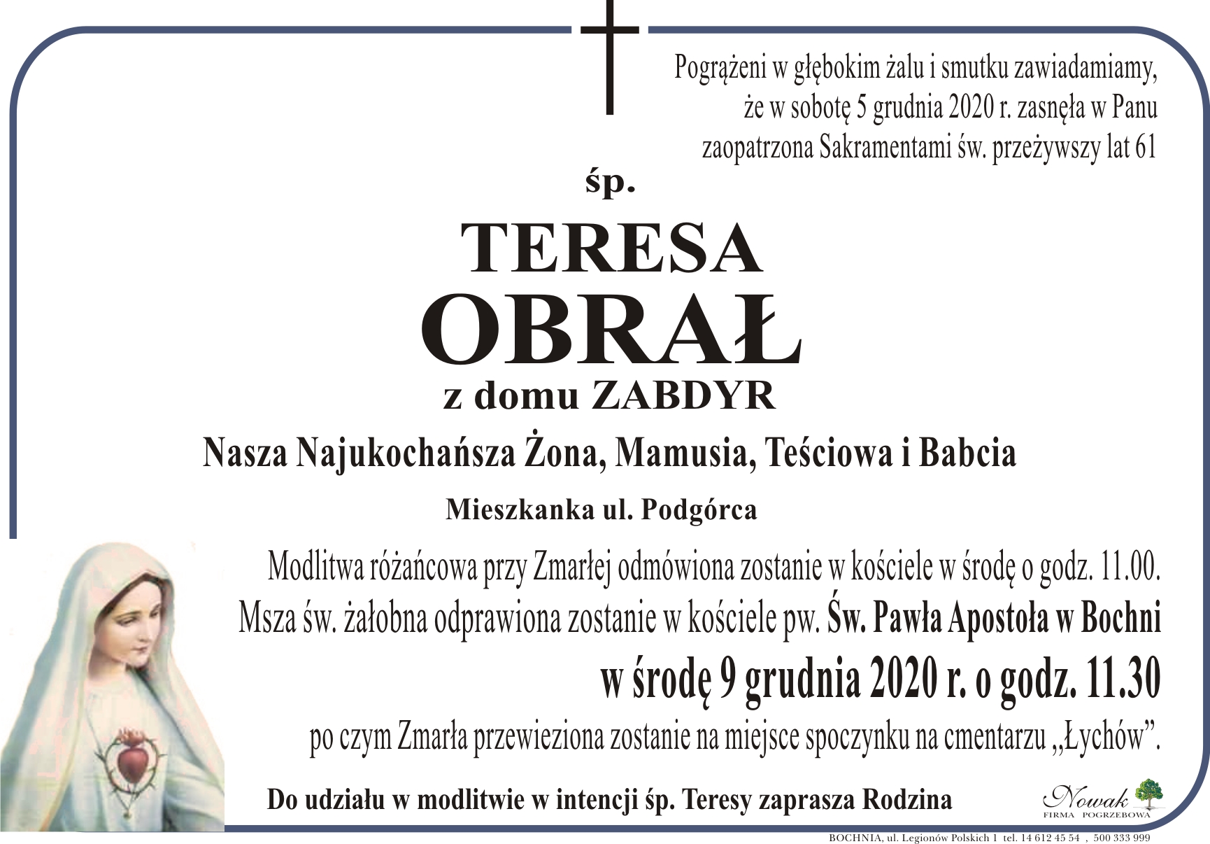 ś.p. Teresa Obrał