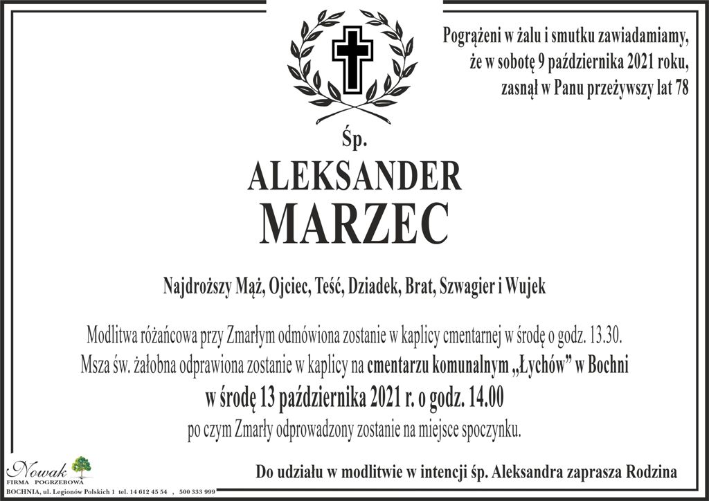śp. Aleksander Marzec Małgorzata Więcek-Cebula Dodano 10 października 2021 12:10 Share Tweet Share Share Email Komentarzy Tagi: Share Tweet Share Share Email - REKLAMA -