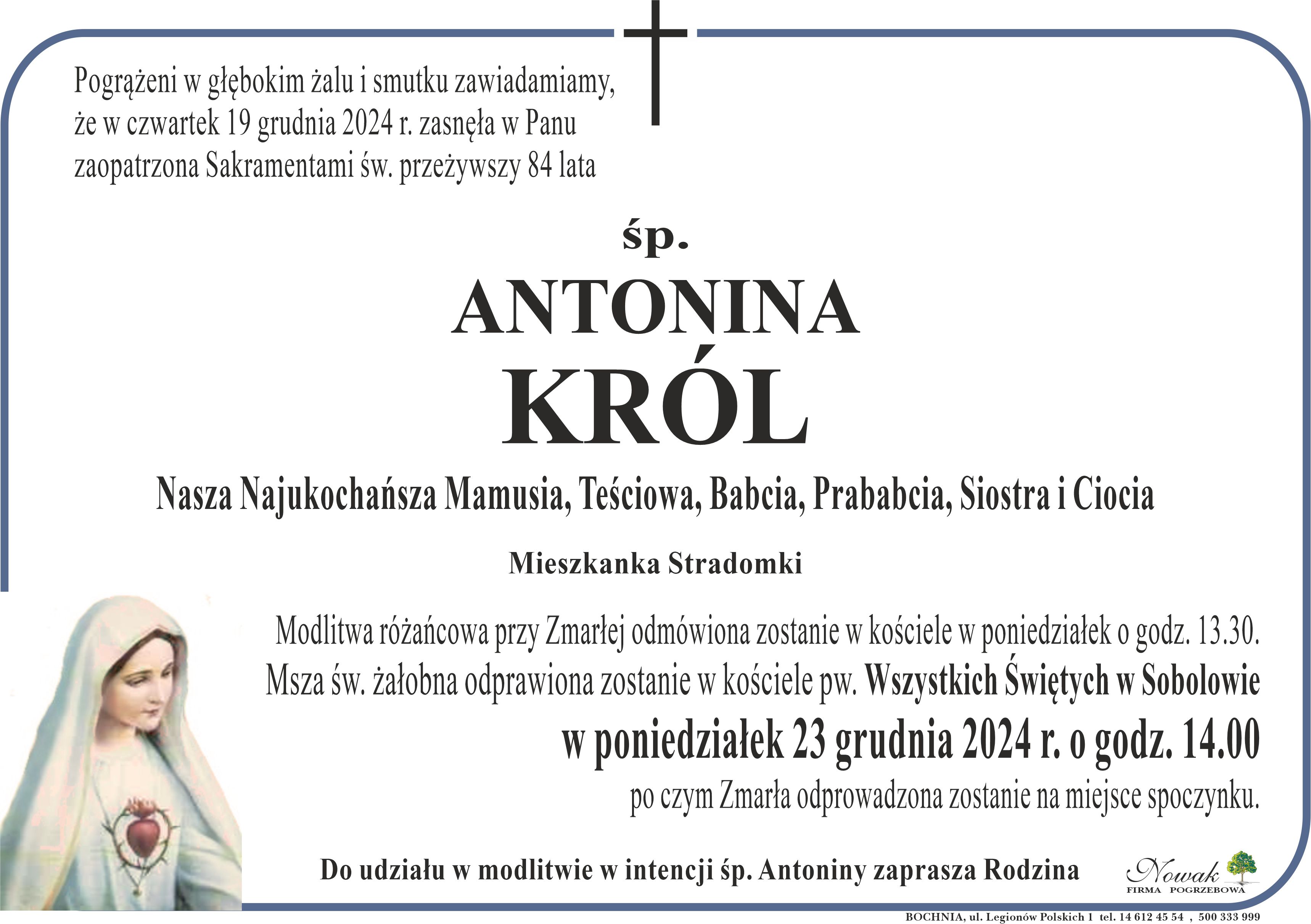 śp. Antonina Król Małgorzata Więcek-Cebula Dodano 25 grudnia 2024 09:33 Share Tweet Share Share Email Komentarzy Tagi: Share Tweet Share Share Email - REKLAMA -