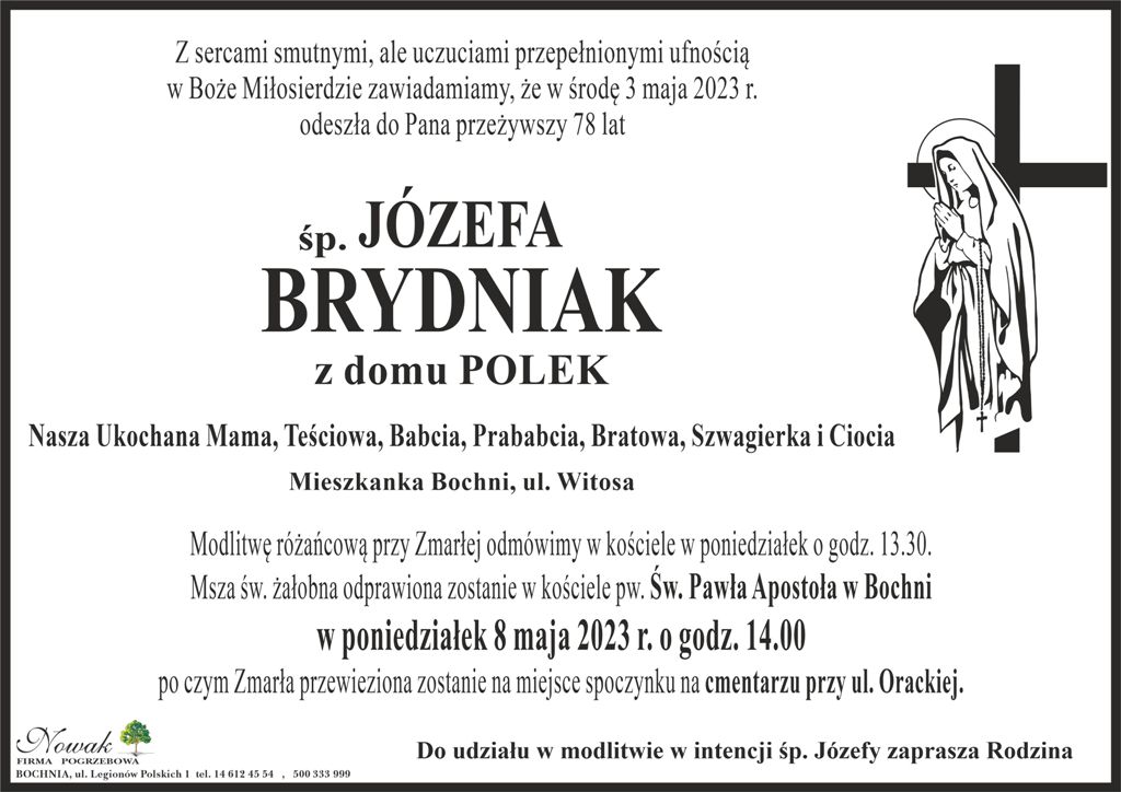 śp. Józefa Brydniak Małgorzata Więcek-Cebula Dodano 05 maja 2023 09:55 Share Tweet Share Share Email Komentarzy Tagi: Share Tweet Share Share Email - REKLAMA -