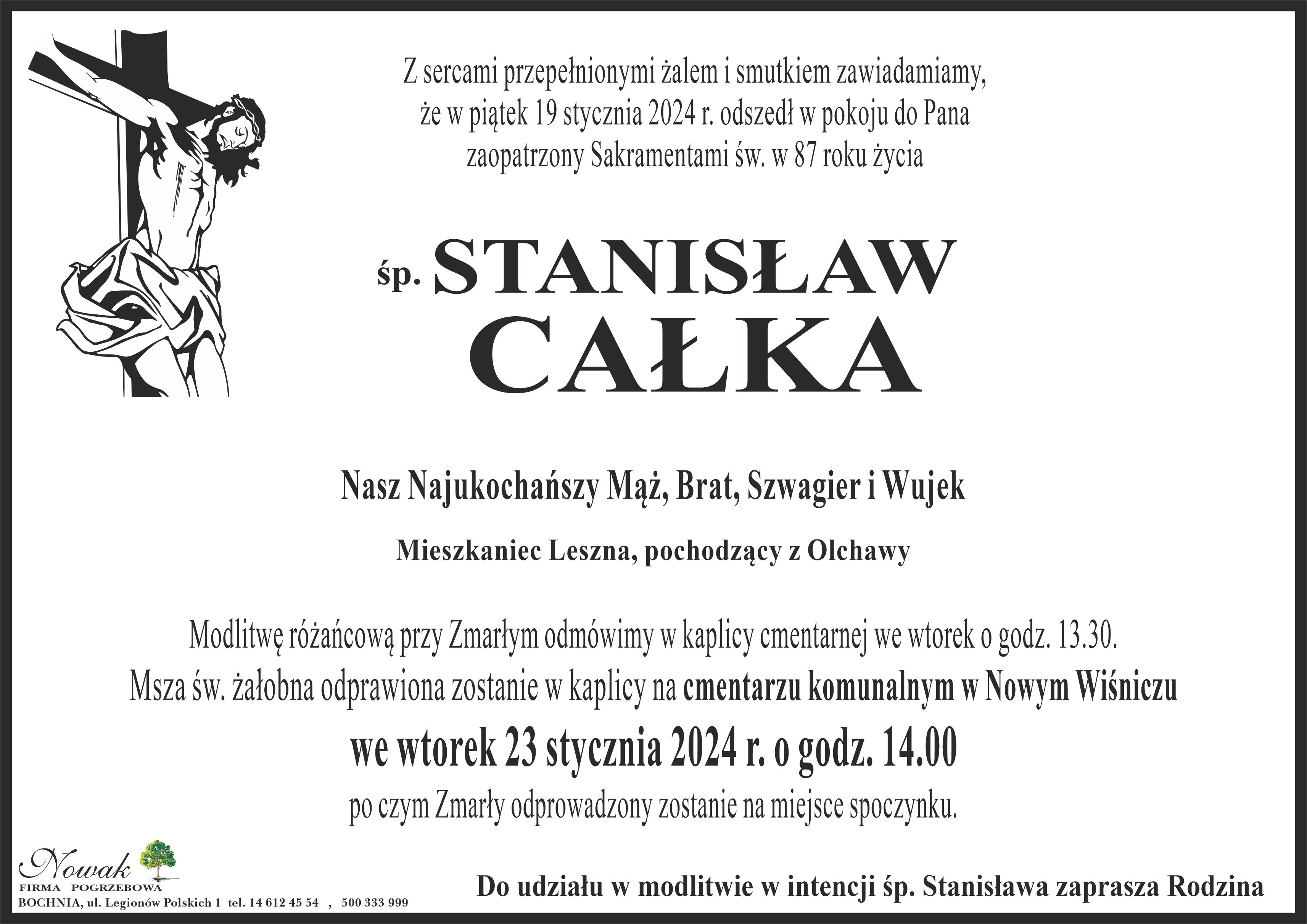 śp. Stanisław Całka Małgorzata Więcek-Cebula Dodano 23 stycznia 2024 19:17 Share Tweet Share Share Email Komentarzy Tagi: Share Tweet Share Share Email - REKLAMA -