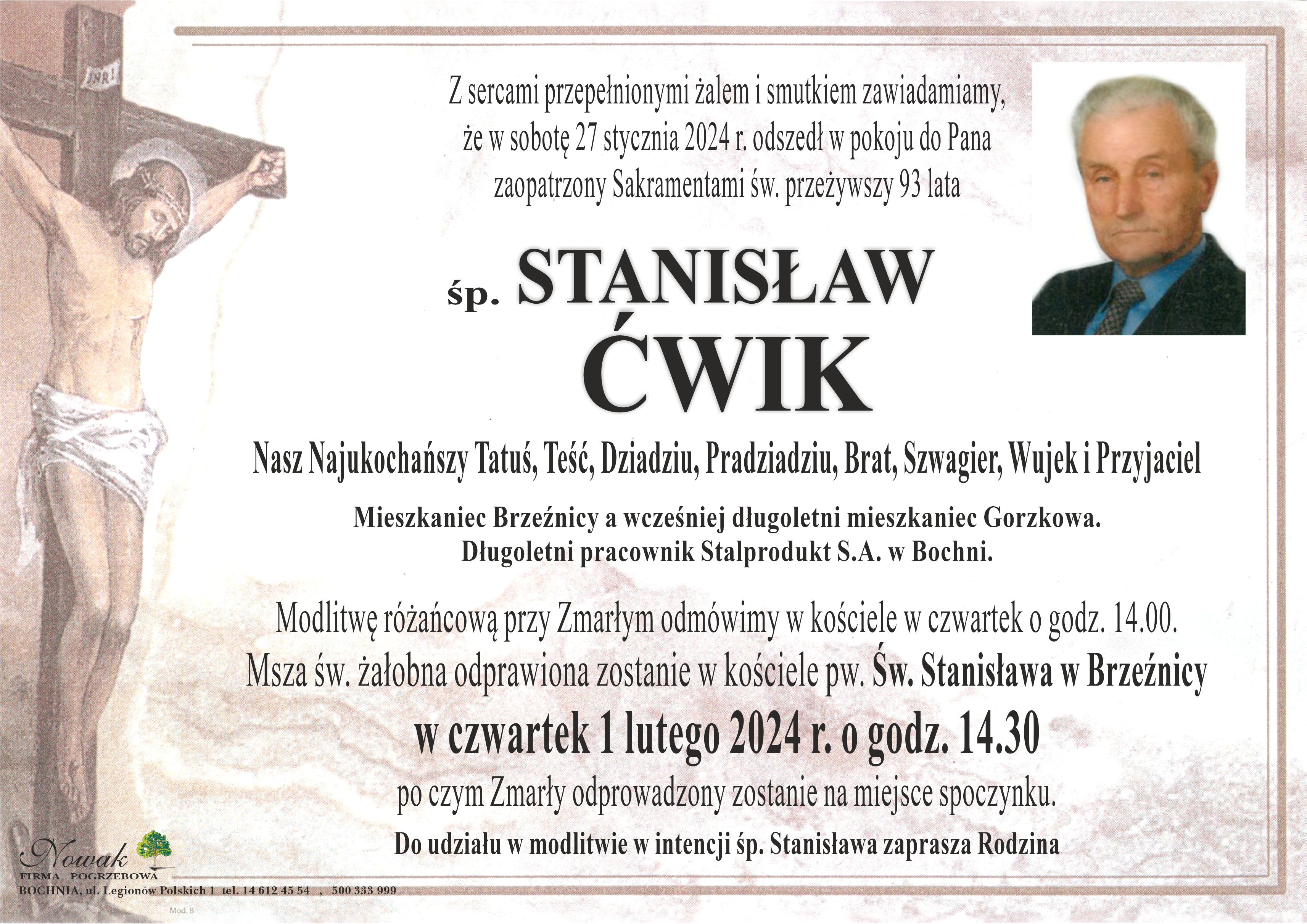 śp. Stanisław Ćwik Małgorzata Więcek-Cebula Dodano 31 stycznia 2024 16:56 Share Tweet Share Share Email Komentarzy Tagi: Share Tweet Share Share Email - REKLAMA -