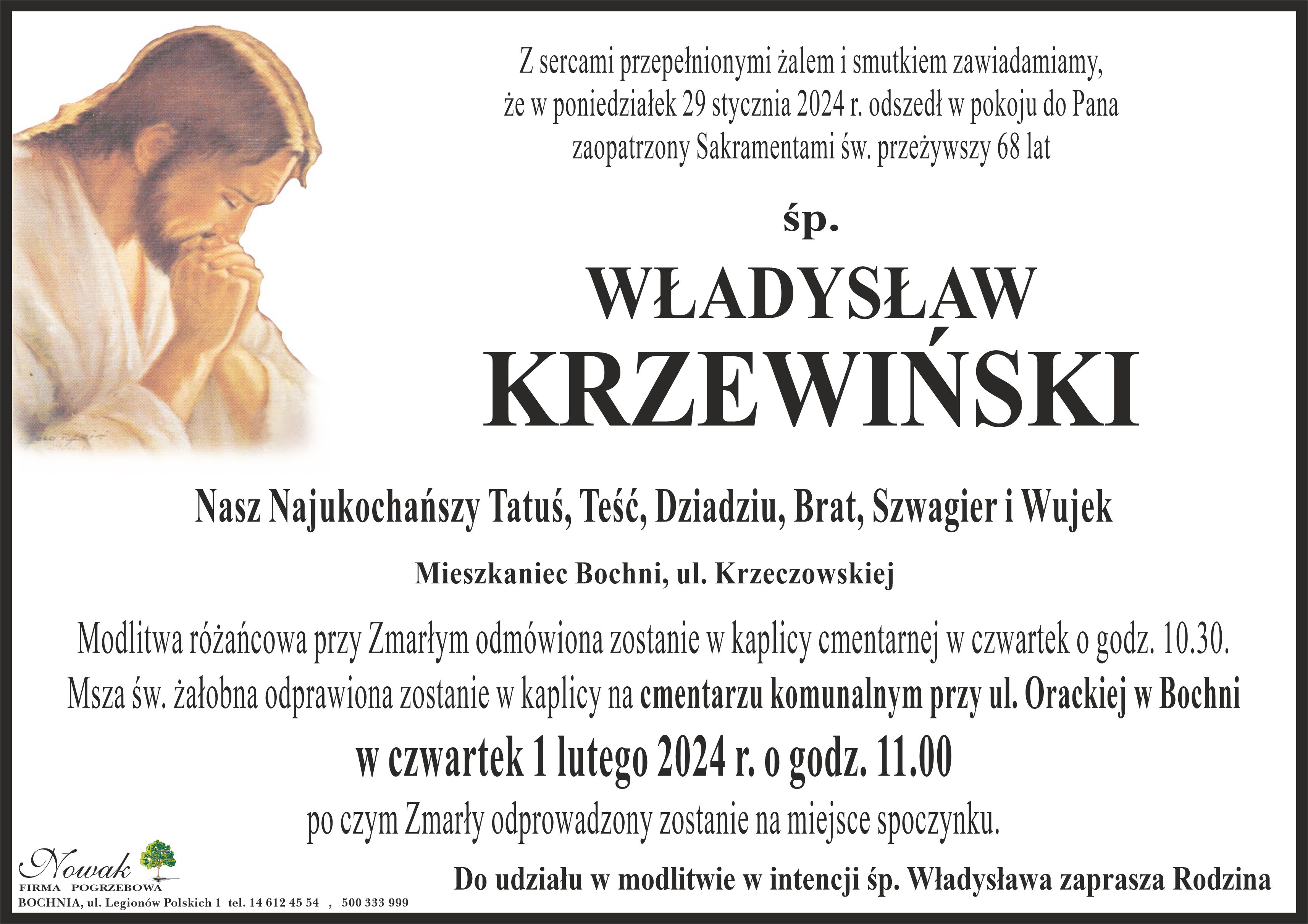 śp. Władysław Krzewiński Małgorzata Więcek-Cebula Dodano 31 stycznia 2024 16:57 Share Tweet Share Share Email Komentarzy Tagi: Share Tweet Share Share Email - REKLAMA -