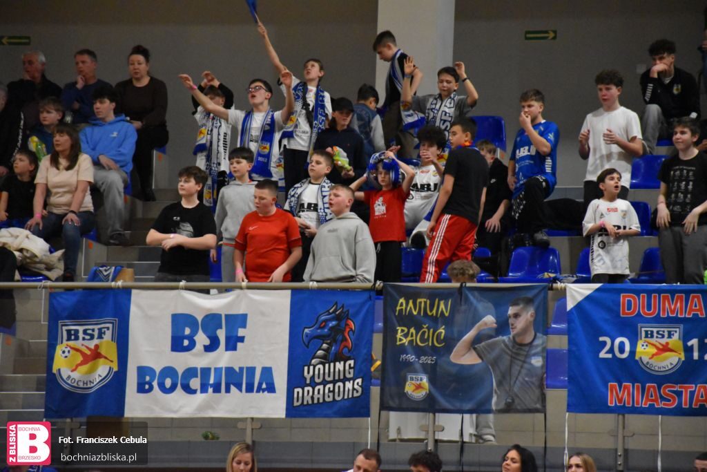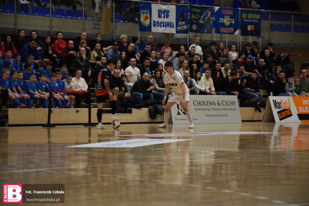 Na drugą połowę bochnianie wyszli z wielką determinacją i dążyli do strzelenia bramki. W 25. minucie, po dobrym rozegraniu rzutu rożnego z dystansu huknął Galesić pakując piłkę w bramce. Minutę później kolejną bramkę dołożył Prokop. W tym momencie trybuny oszalały, cała hala zaczęła dopingować BSF, nagradzając ich świetną postawę. Niestety dość szybko rywale zdobyli kolejną bramkę po błędzie defensywy BSF-u. Gracze BSF ABJ Powiat Bochnia cały czas nieustępliwie dążyli do wyrównania, co w 33. minucie stało się faktem. Bramkę wyrównującą stan meczu zdobył ponownie Galesić. Niestety chwilę później bramkę na 3-4 zdobył Siecla.