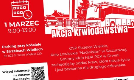 Gminny Klub Honorowych Dawców Krwi w Drwini zaprasza mieszkańców gminy Drwinia i okolicznych miejscowości do udziału w Akcji Honorowego Oddawania Krwi, która...