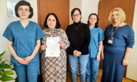 Iwona Dymek, koordynator ds. przeszczepów Szpitala Uniwersyteckiego w Krakowie. wręczyła na ręce Dyrektora Szpitala Alicji Syty i Zespołu ds. Transplantacji podziękowania za...