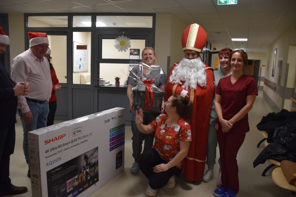 Prezentem od świętego był także 55-calowy telewizor dla mieszkańców ZOL w Bochni. Darczyńcy przekazali go na ręce Renaty Weiss Koordynatorki ZOL w Bochni. Trafi on na świetlicę.