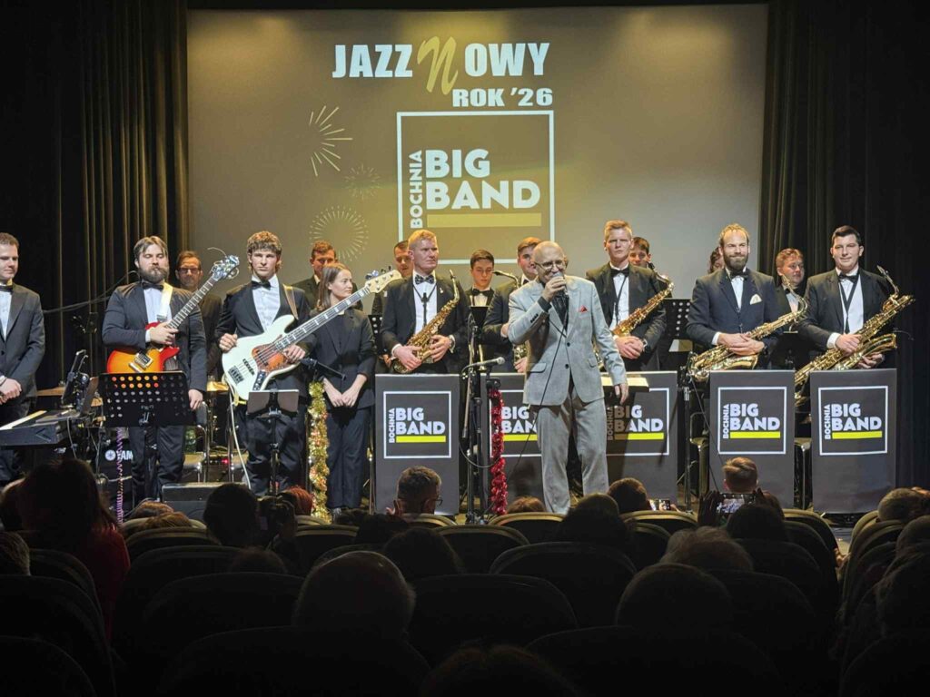 Już pół godziny przed rozpoczęciem noworocznego koncertu Big Band Bochnia sala Kina Regis była wypełniona po brzegi. To muzyczne wydarzenie, podczas którego wybrzmiały znakomicie zagrane światowe przeboje świąteczne i noworoczne, przyciągnęło tłumy. Koncert odbył się w noworoczny wieczór w sali bocheńskiego kina Regis.