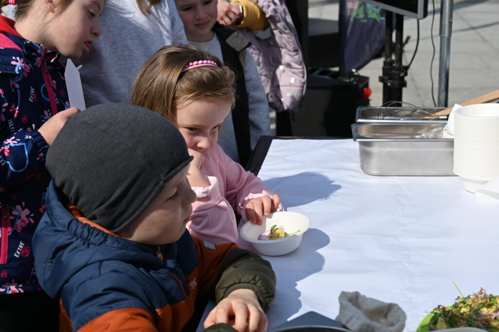 Na odwiedzających czekało wiele atrakcji dla całych rodzin – najmłodsi chętnie korzystali z dmuchańców, a dużym zainteresowaniem cieszyły się konkursy i pokazy kulinarne. Szczególnym punktem programu było gotowanie na żywo, podczas którego szef kuchni Piotr Wojcieszko dzielił się przepisami na tradycyjne potrawy wielkanocne