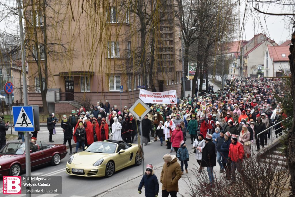 Przedstawiciele wszystkich bocheńskich parafii wzięli udział w Orszaku Trzech Króli, który w Bochni zorganizowano po raz siódmy. Uczestnikom wydarzenia tradycyjnie towarzyszyła Grupa Kolędnicza z Połomia Dużego, żywa szopka oraz barwny korowód postaci jasełkowych.