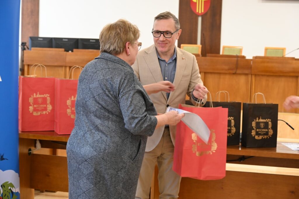 W poniedziałek w Urzędzie Miasta odbyło się spotkanie, podczas którego nagrody laureatom i osobom wyróżnionym, w imieniu Burmistrz Magdaleny Łacnej, wręczył jej zastępca – Filip Pach.