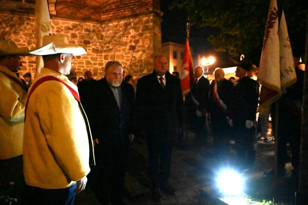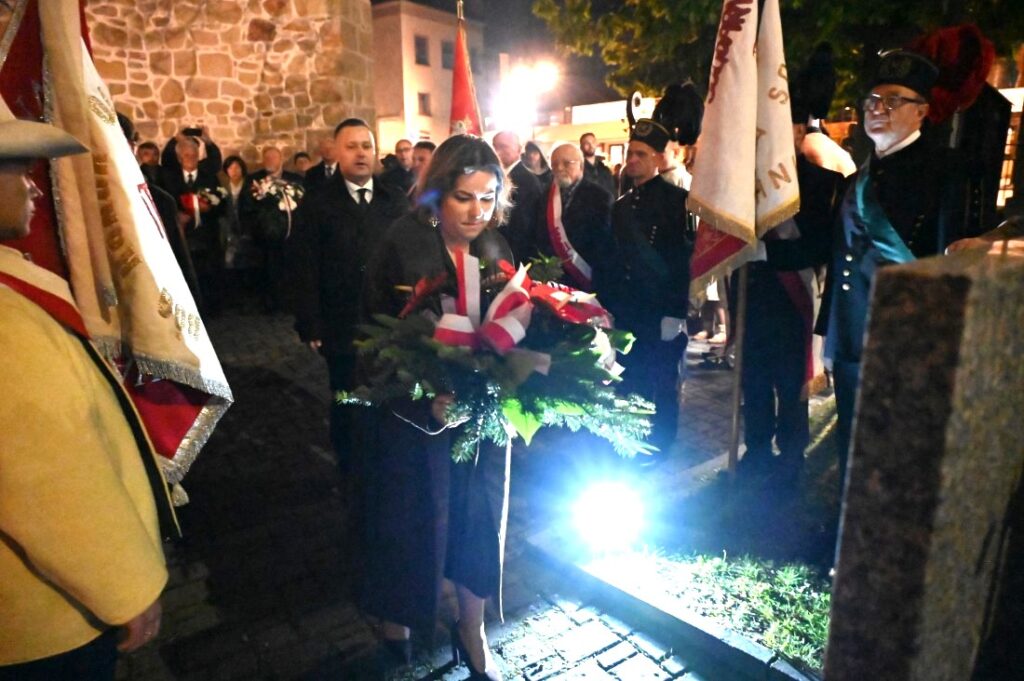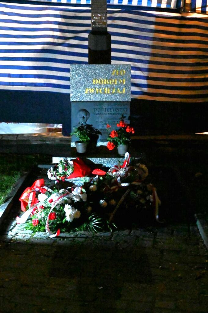 Po zakończeniu Mszy Świętej uczestnicy udali się pod krzyż upamiętniający bł. ks. Jerzego Popiełuszkę. Delegacje złożyły biało-czerwone wiązanki kwiatów i zapaliły znicze, oddając hołd kapłanowi, męczennikowi i niezłomnemu obrońcy praw człowieka.