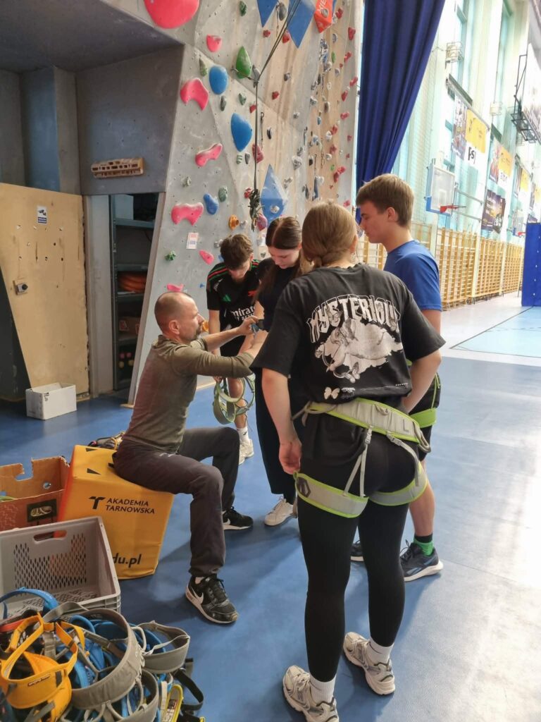 Kilka dni później ta opowieść znalazła swoje odbicie w praktyce. W Akademii Tarnowskiej młodzież stanęła pod ścianą wspinaczkową. Najpierw była nauka sprzętu i zasad bezpieczeństwa. Potem rozgrzewka, a wreszcie moment, w którym trzeba było zaufać sobie. Pierwsze ruchy, zawahanie, szybkie spojrzenie w dół, i decyzja, by iść wyżej. Dla części uczniów to było przełamywanie lęku, dla innych sprawdzian siły i koncentracji. Każdy jednak zszedł z tej ściany bogatszy o doświadczenie, którego nie da się zastąpić żadnym ekranem. Bo właśnie o to dziś chodzi. W świecie, w którym młodzi ludzie coraz więcej czasu spędzają w rzeczywistości cyfrowej, takie doświadczenia nabierają szczególnej wartości. Kontakt z przestrzenią, wysiłkiem, ryzykiem i własnymi emocjami staje się czymś więcej niż tylko formą aktywności. To powrót do sytuacji, w której ciało, błędnik i głowa muszą współpracować, a decyzje mają natychmiastowy rezultat.