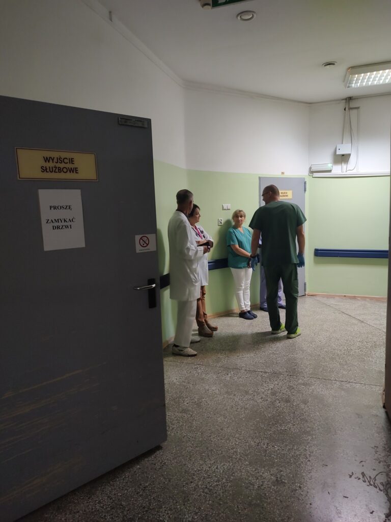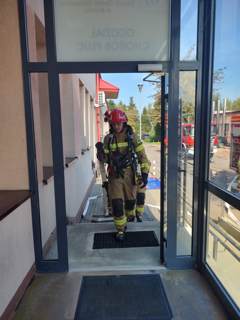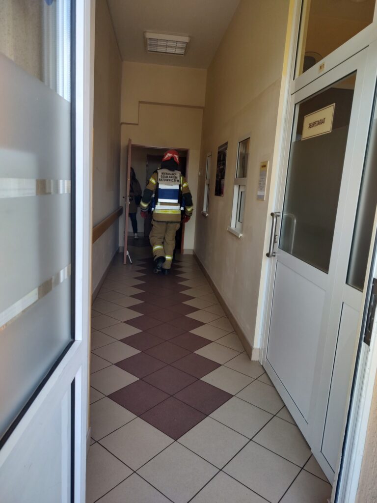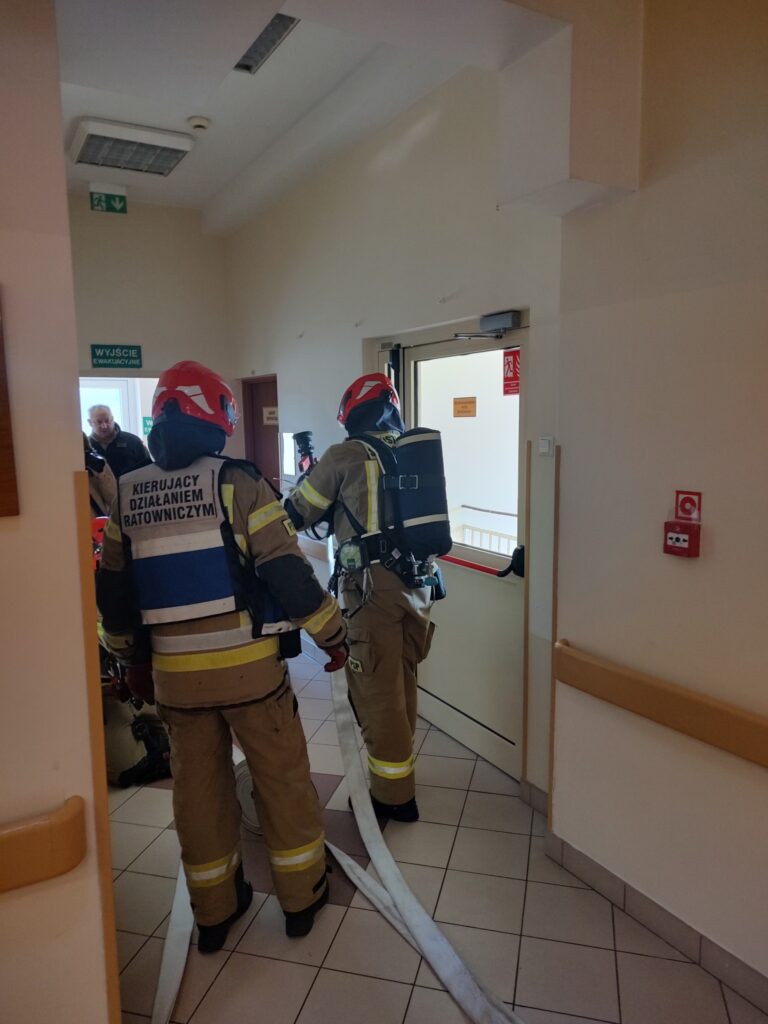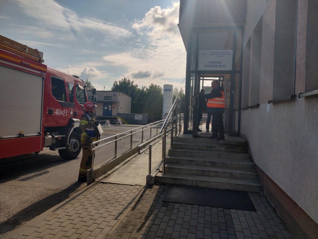 Dodatkowo wykonano również symulowaną ewakuację z oddziału szpitalnego. Tym razem ewakuowano personel i pacjentów Oddziału Chorób Płuc.