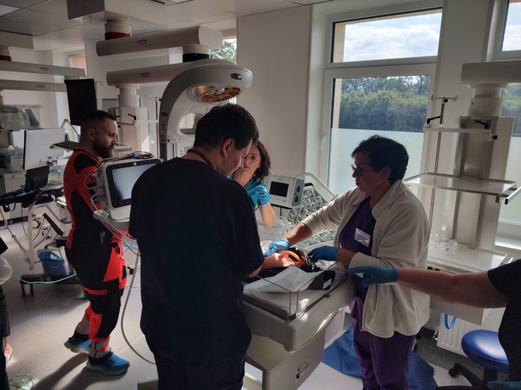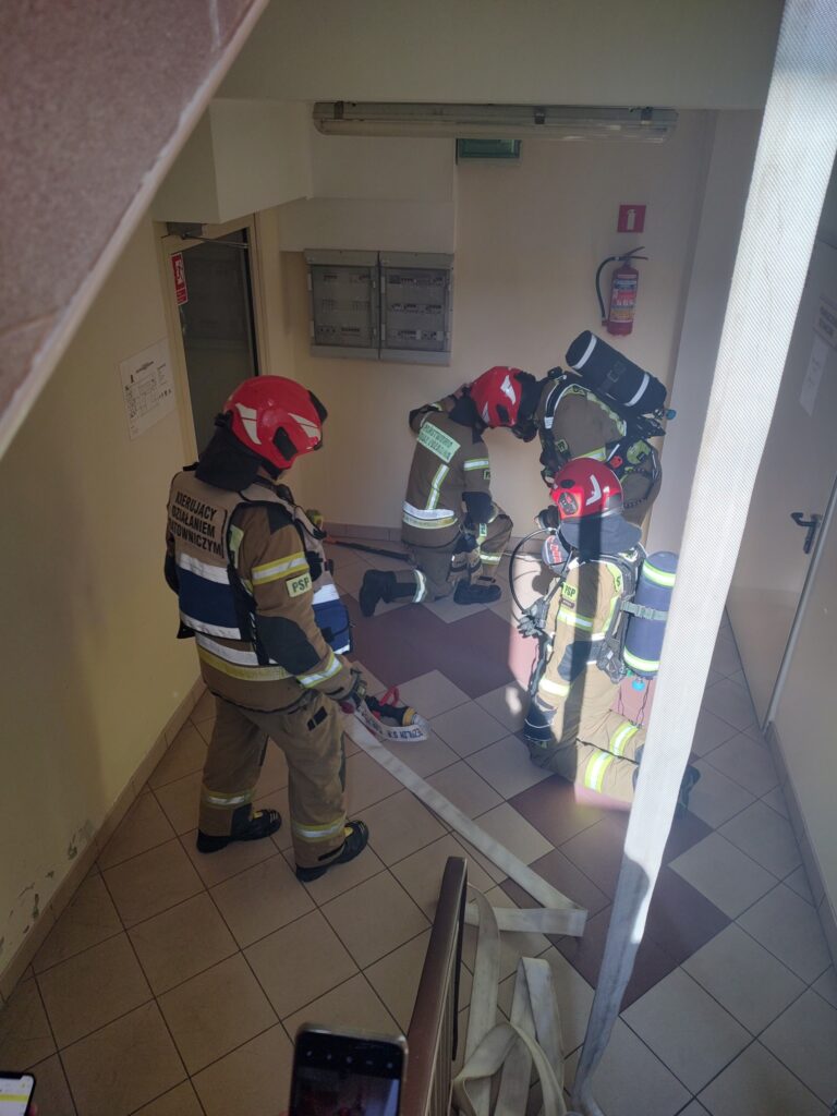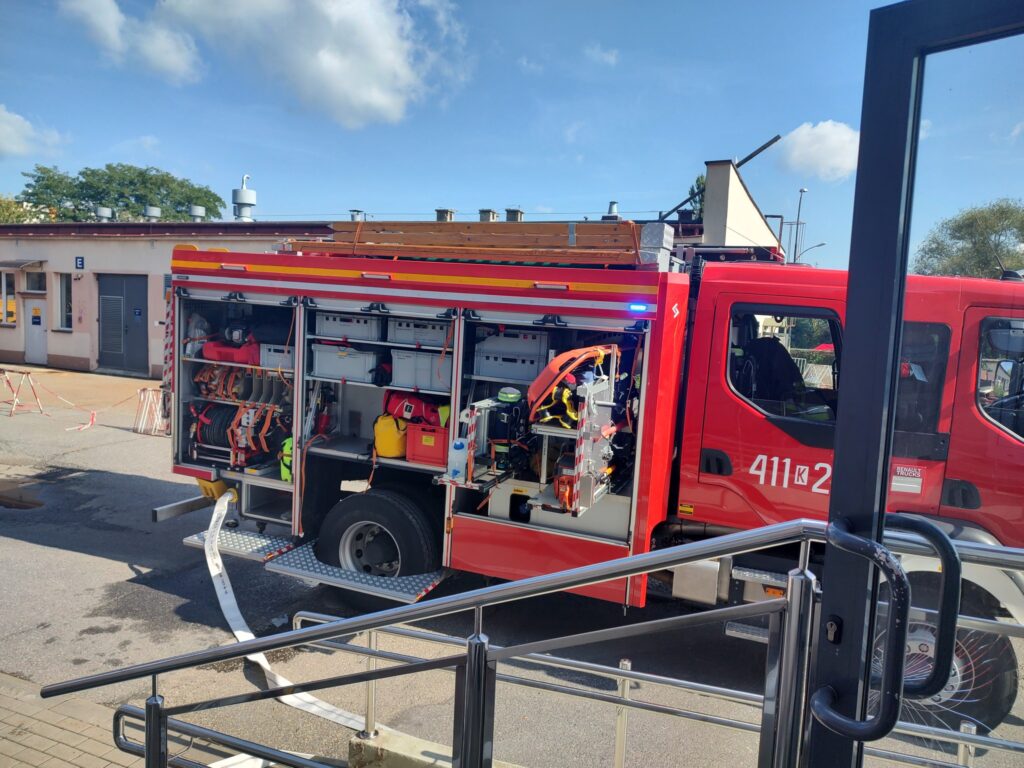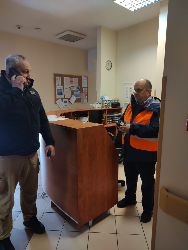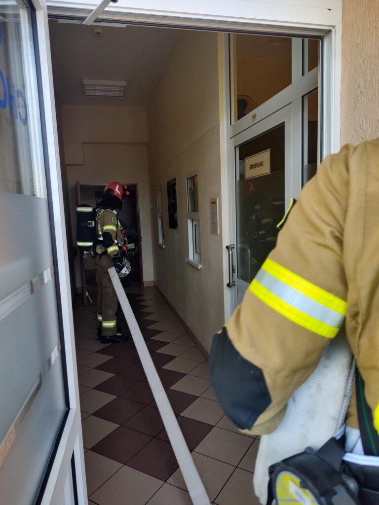 Dodatkowo wykonano również symulowaną ewakuację z oddziału szpitalnego. Tym razem ewakuowano personel i pacjentów Oddziału Chorób Płuc.