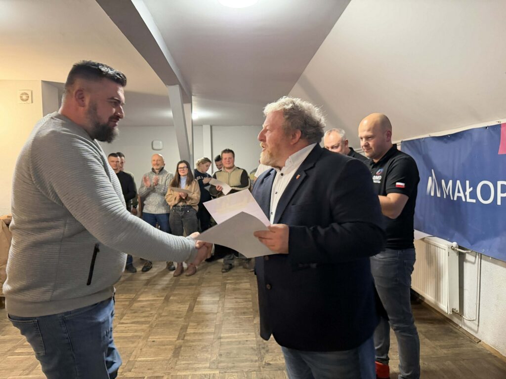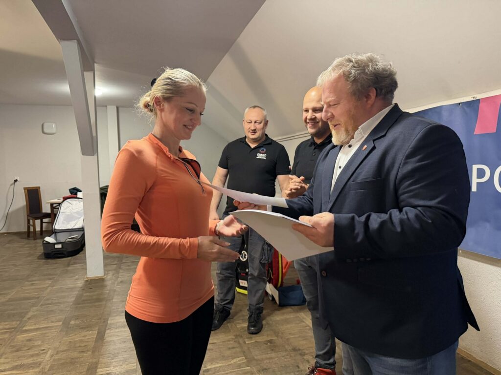 Podczas uroczystego podsumowania, uczestnikom wręczono zaświadczenia potwierdzające ukończenie szkolenia z wynikiem pozytywnym. Dokumenty te wręczył strażakom zastępca burmistrza Wojciech Woźniczka.