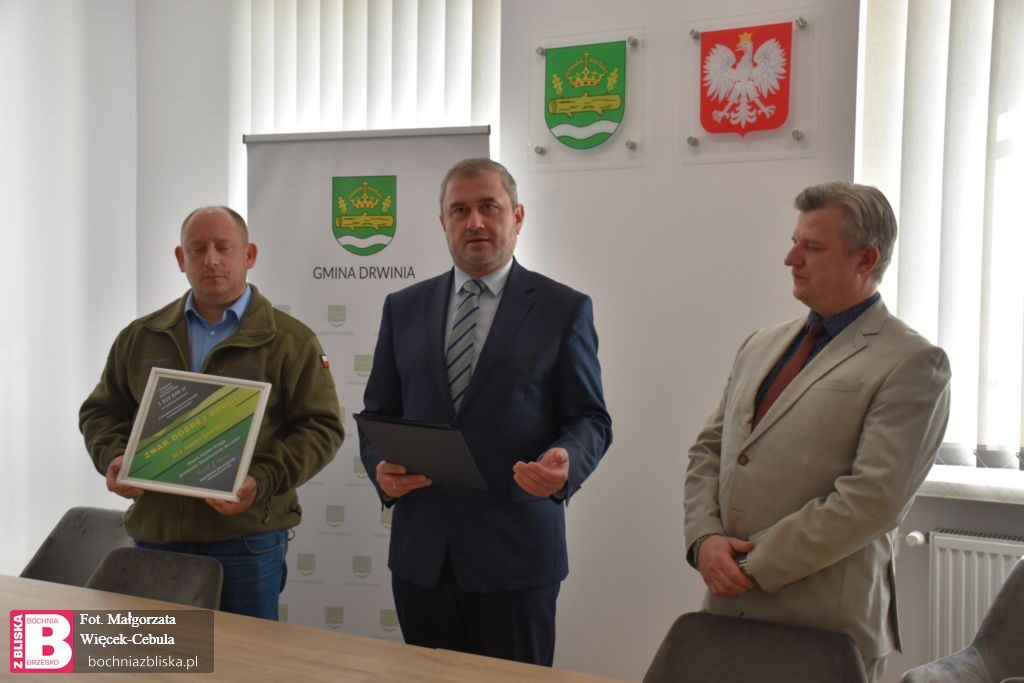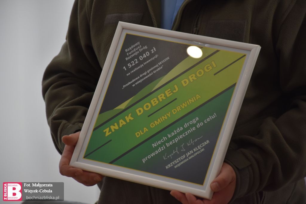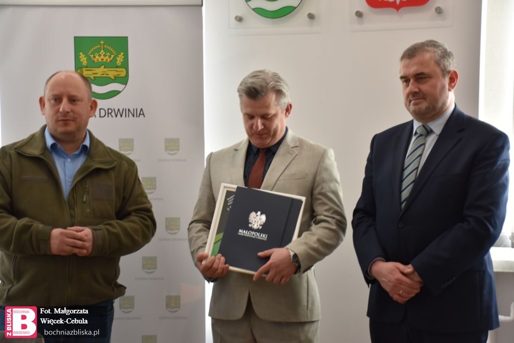 Będzie nowa nawierzchnia i bezpieczny chodnik. Samorząd Gminy Drwinia otrzymał ponad 1,5 mln zł na przebudowę drogi gminnej w Grobli. Dziś w budynku Urzędu Gminy w Drwini podpisano umowę pomiędzy Janem Pająkiem, wójtem gminy a Krzysztofem Janem Klęczarem Wojewodą Małopolskim. W spotkaniu wzięli udział także: Stanisław Bukowiec Sekretarz Stanu w Ministerstwie Infrastruktury, Ryszard Drożdżak Wicestarosta Powiatu Bocheńskiego oraz Leszek Zabiegała Sekretarz Gminy Drwinia.