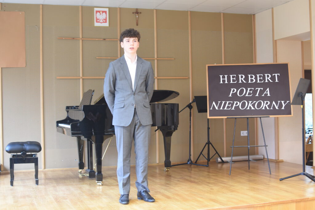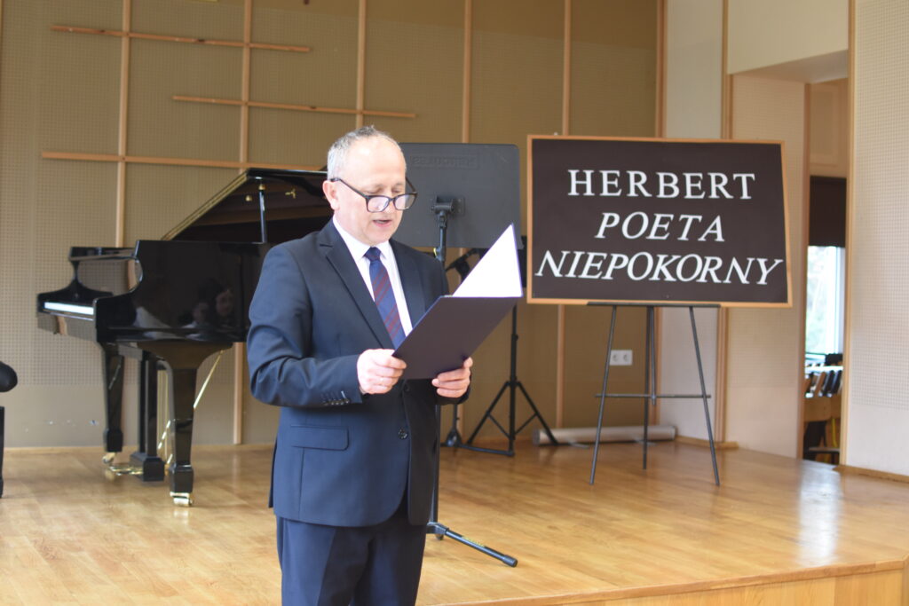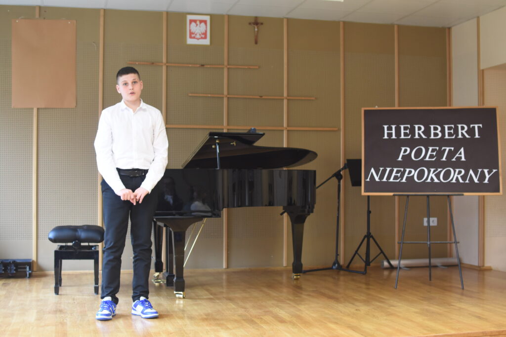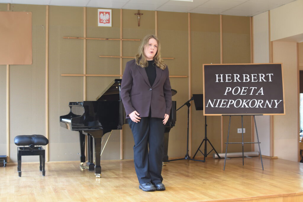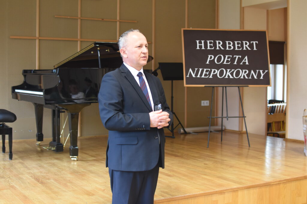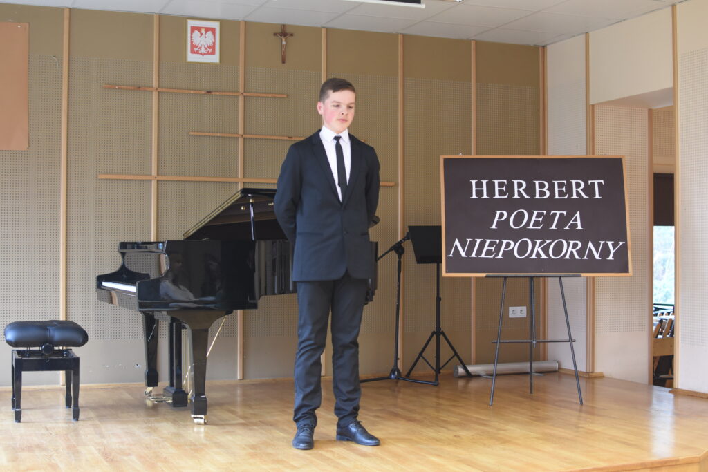 „Nie wyrokuje, nie wieszczy, nawet nie oskarża. Dopuszcza wszystkie racje osaczające dzisiaj człowieka, te racje, których nadmiar nęka właśnie współczesność. Zna racje Fortynbrasa i zna racje Hamleta. Zna racje dworaka, ale zna także racje władcy. Zna racje torturowanych i torturujących. Wszystkie racje dopuszcza, aby być przeciwko nim wszystkim”  – tak o Zbigniewie Herbercie napisał Zbigniew Bieńkowski wybitny polski poeta i krytyk literacki. I w tych właśnie słowach zawiera się fenomen twórczości poety,  którego poezję  recytowali  uczniowie klas VII i VIII szkół podstawowych gminy Trzciana  podczas czwartego już gminnego konkursu recytatorskiego pod hasłem „Herbert – poeta niepokorny”, który odbył się w Zespole Placówek Oświatowych w Trzcianie. Pomysłodawcą oraz organizatorem tego konkursu jest dyrektor szkoły Andrzej Kącki.