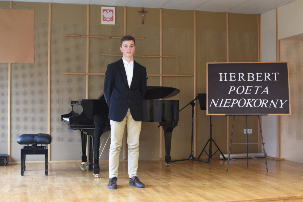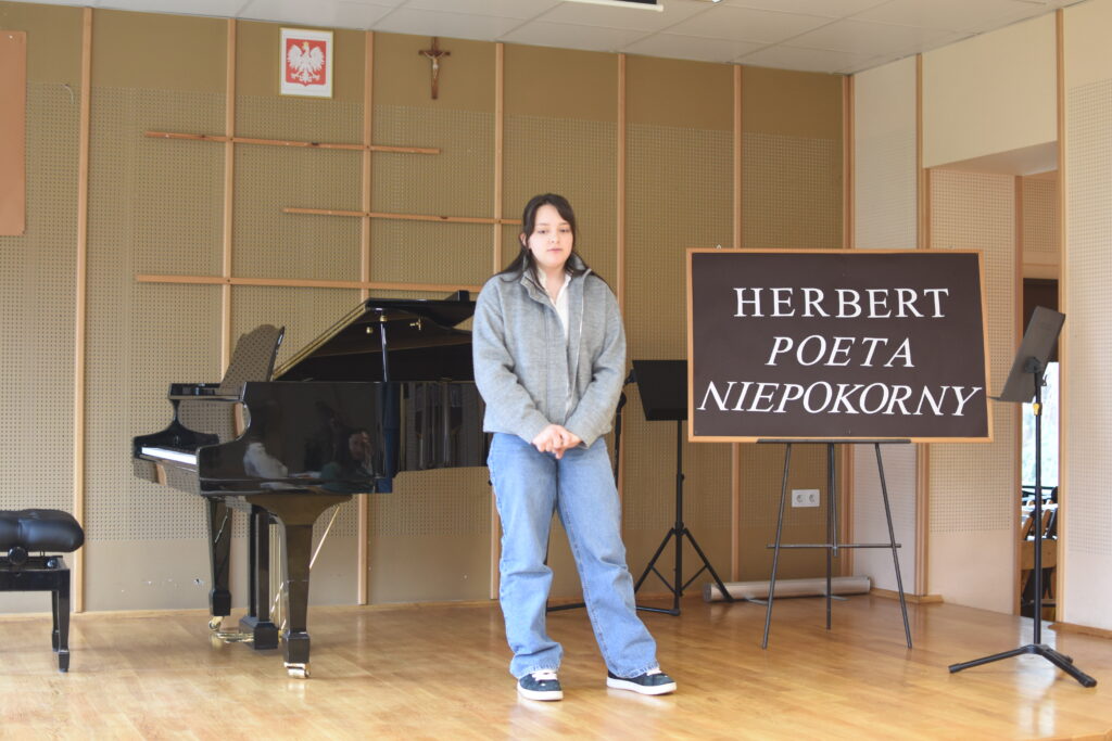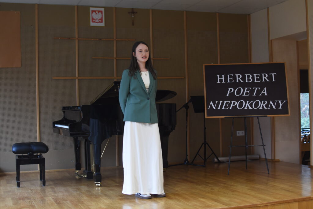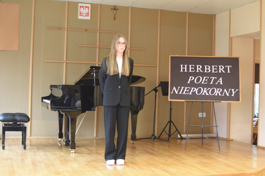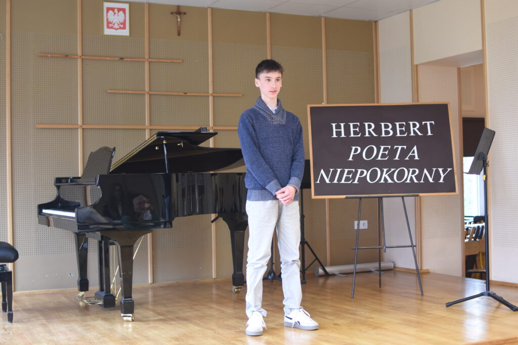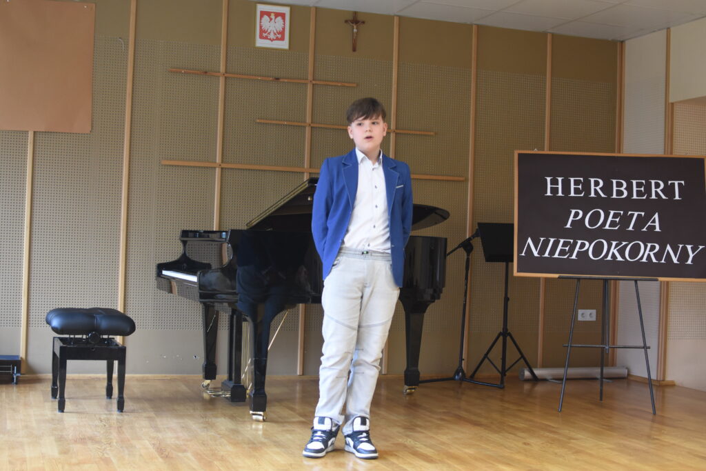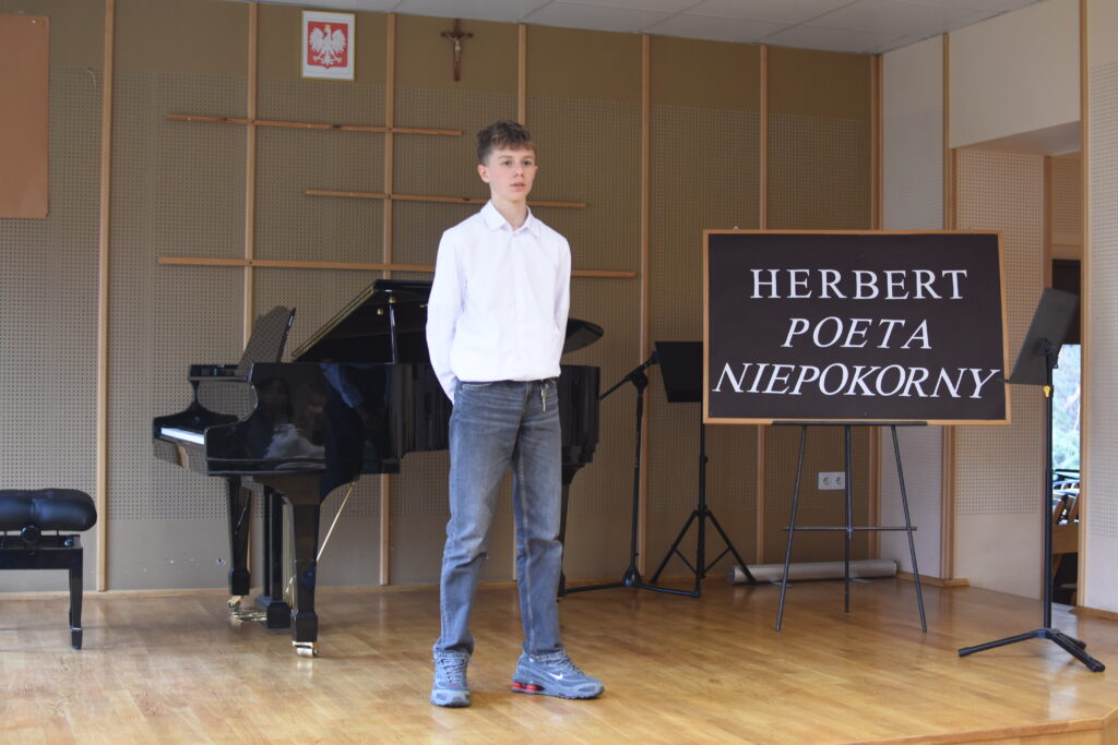 „Nie wyrokuje, nie wieszczy, nawet nie oskarża. Dopuszcza wszystkie racje osaczające dzisiaj człowieka, te racje, których nadmiar nęka właśnie współczesność. Zna racje Fortynbrasa i zna racje Hamleta. Zna racje dworaka, ale zna także racje władcy. Zna racje torturowanych i torturujących. Wszystkie racje dopuszcza, aby być przeciwko nim wszystkim”  – tak o Zbigniewie Herbercie napisał Zbigniew Bieńkowski wybitny polski poeta i krytyk literacki. I w tych właśnie słowach zawiera się fenomen twórczości poety,  którego poezję  recytowali  uczniowie klas VII i VIII szkół podstawowych gminy Trzciana  podczas czwartego już gminnego konkursu recytatorskiego pod hasłem „Herbert – poeta niepokorny”, który odbył się w Zespole Placówek Oświatowych w Trzcianie. Pomysłodawcą oraz organizatorem tego konkursu jest dyrektor szkoły Andrzej Kącki.