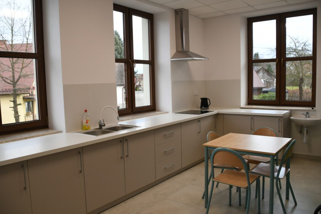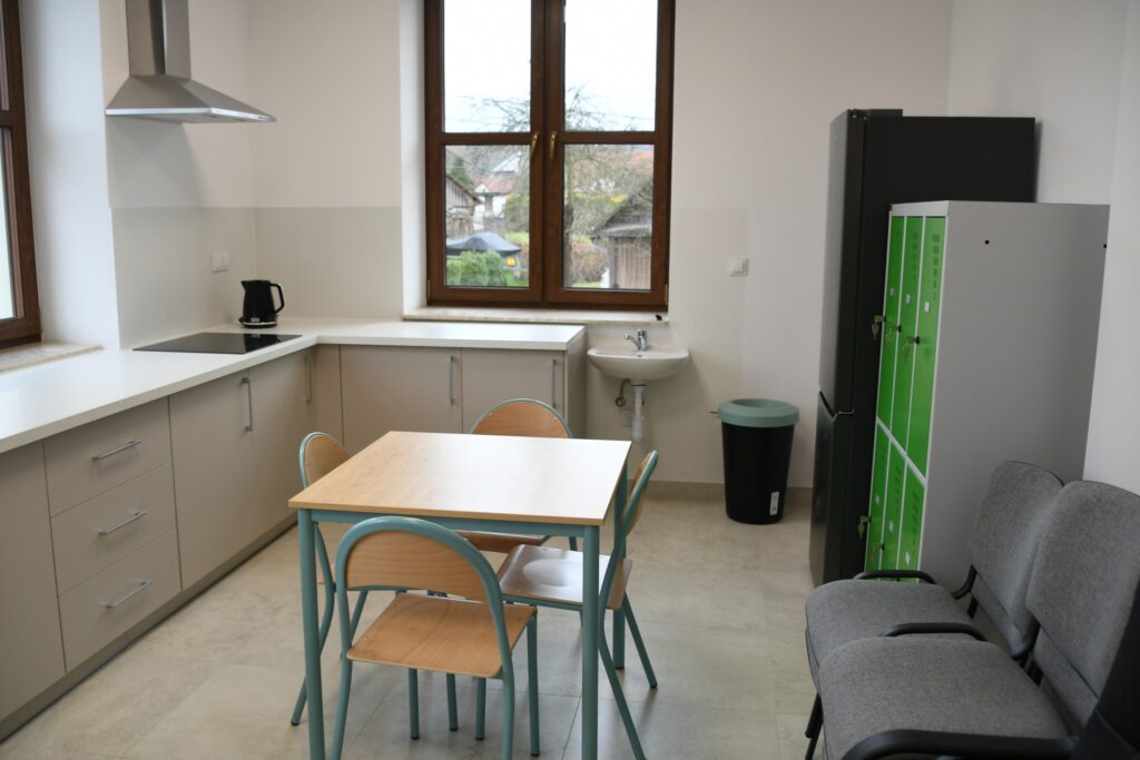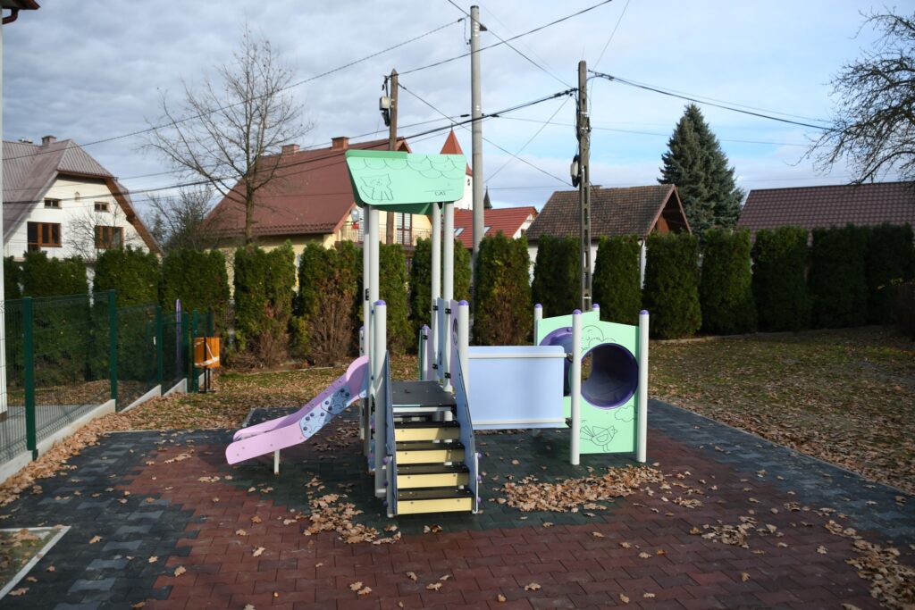 W budynku pomieszczenie gospodarcze zaadaptowano na szatnie, zaplecze techniczne, higieniczne oraz punkt wydawania posiłków, zakupiono też pierwsze wyposażenie potrzebne do funkcjonowania placówki. Zadanie uzupełniła budowa nowego placu zabaw.