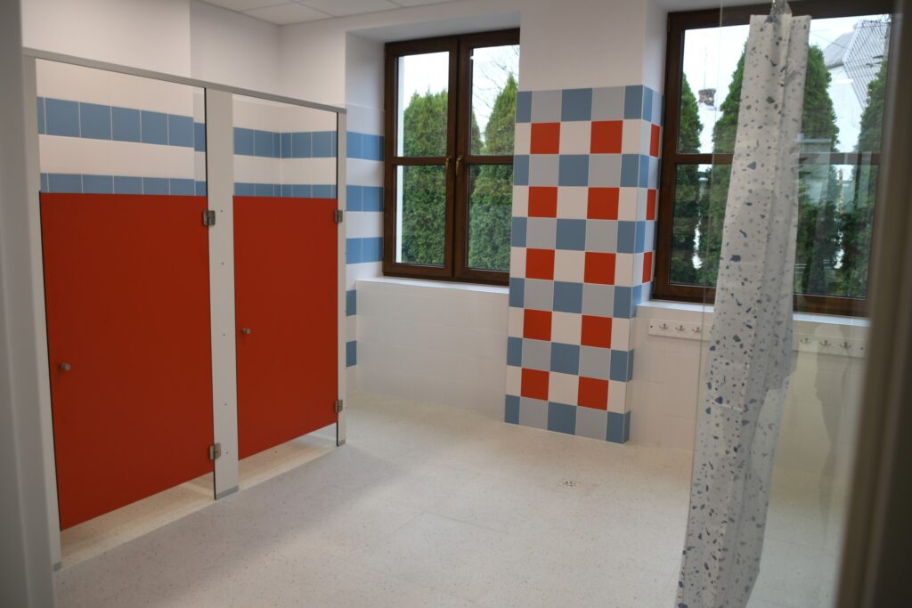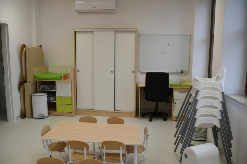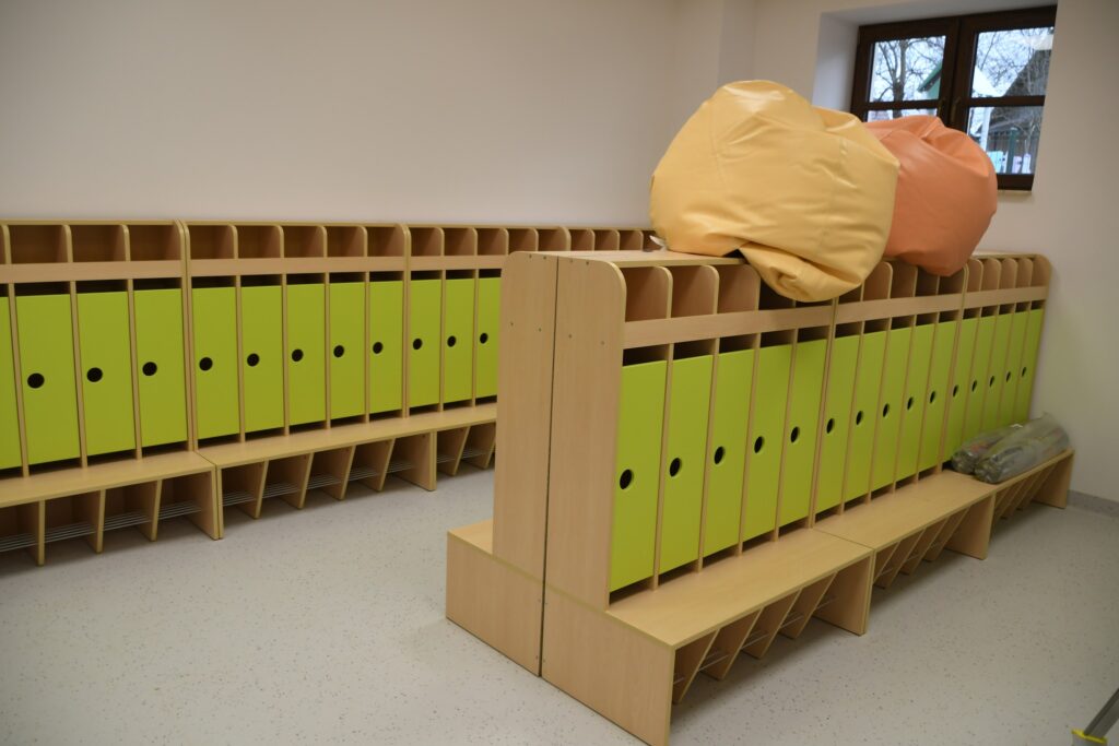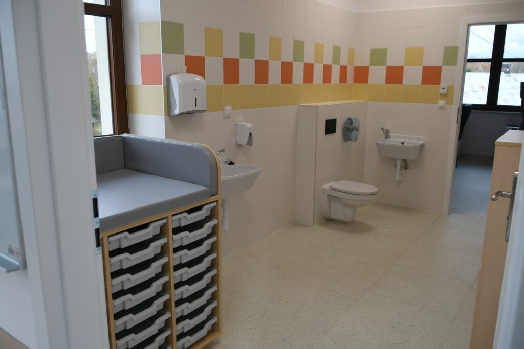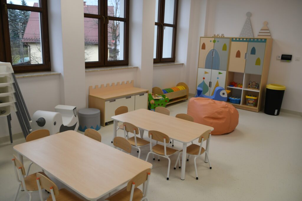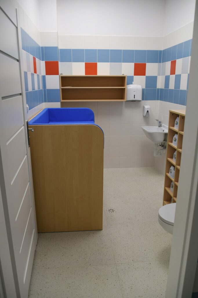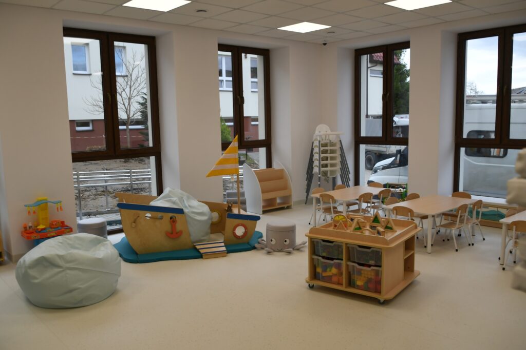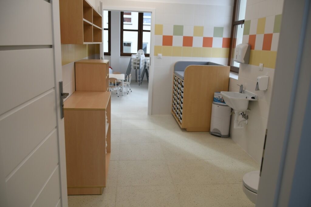 Inwestycja obejmowała też montaż windy i przebudowę klatki schodowej. W ramach zadania zmodernizowano zaplecze sanitarne, dostosowując je w pełni do potrzeb osób z niepełnosprawnościami. Dawne sale lekcyjne przekształcono w sale żłobkowe z własnymi sanitariatami.