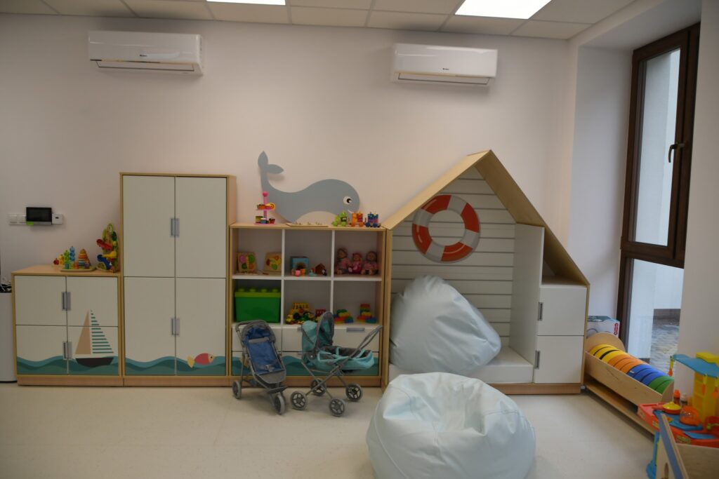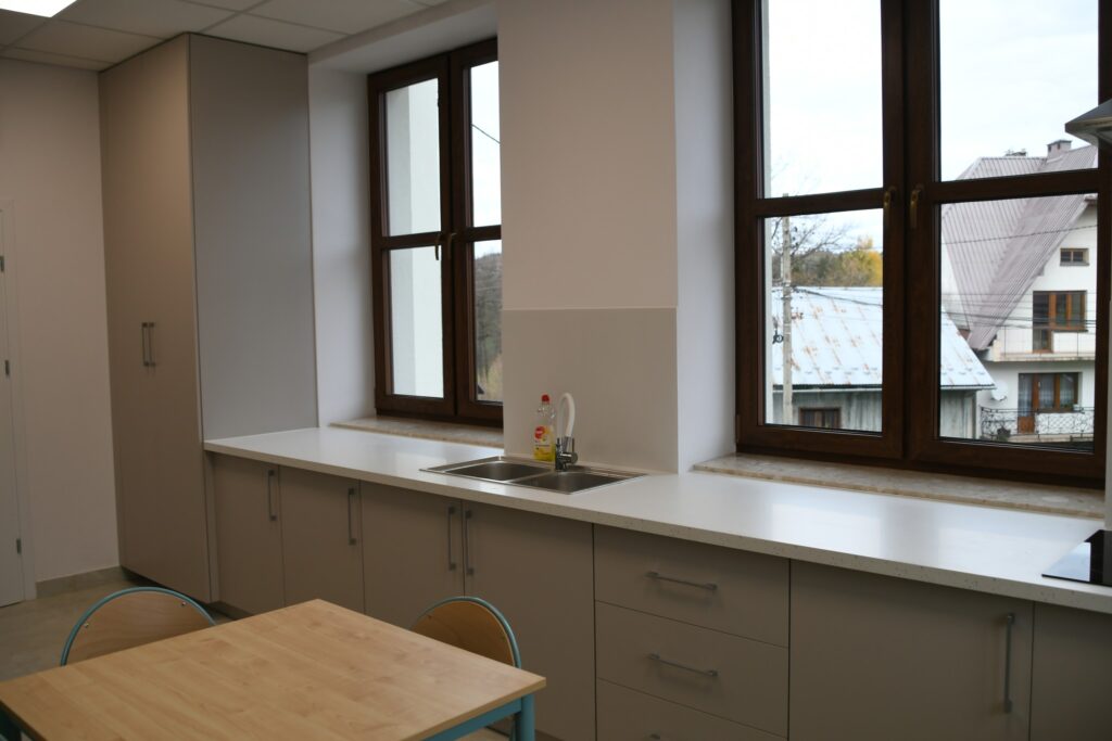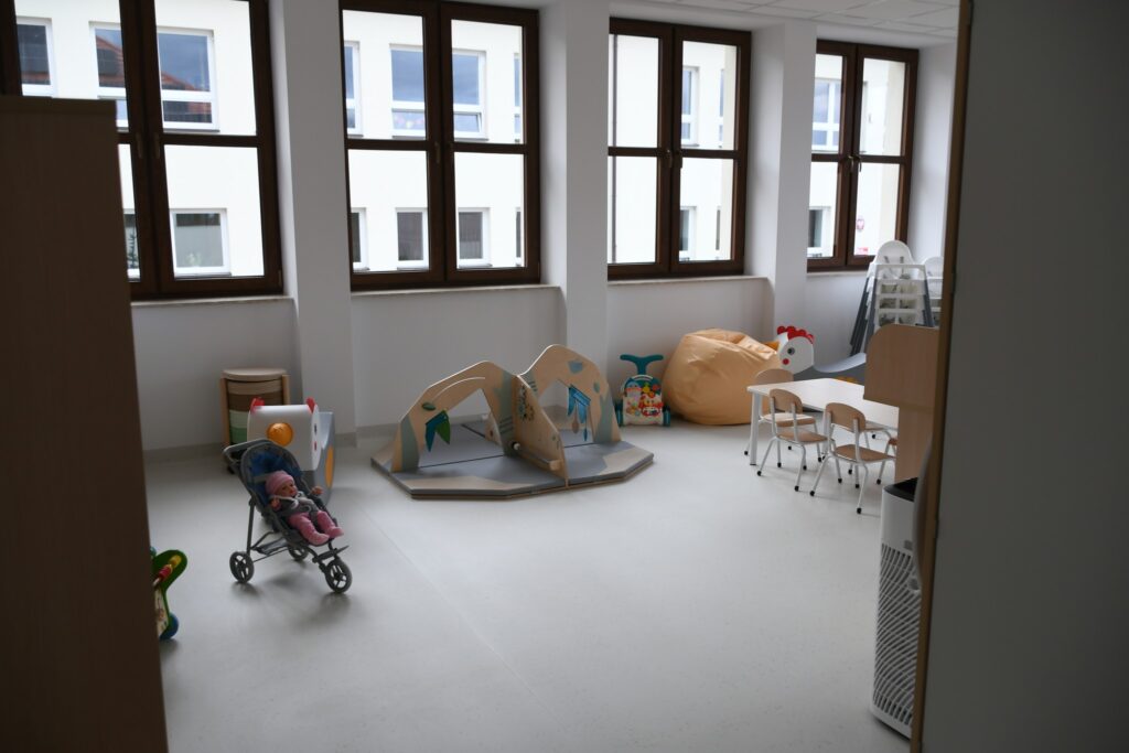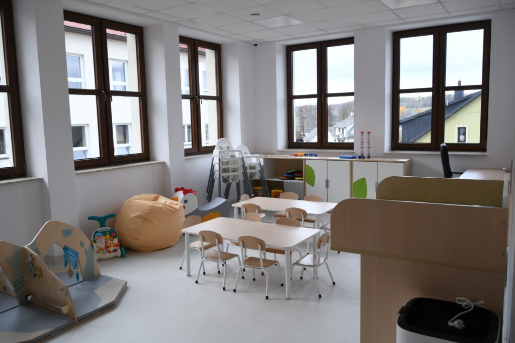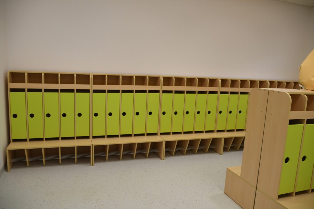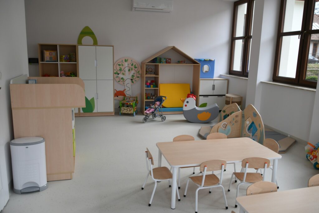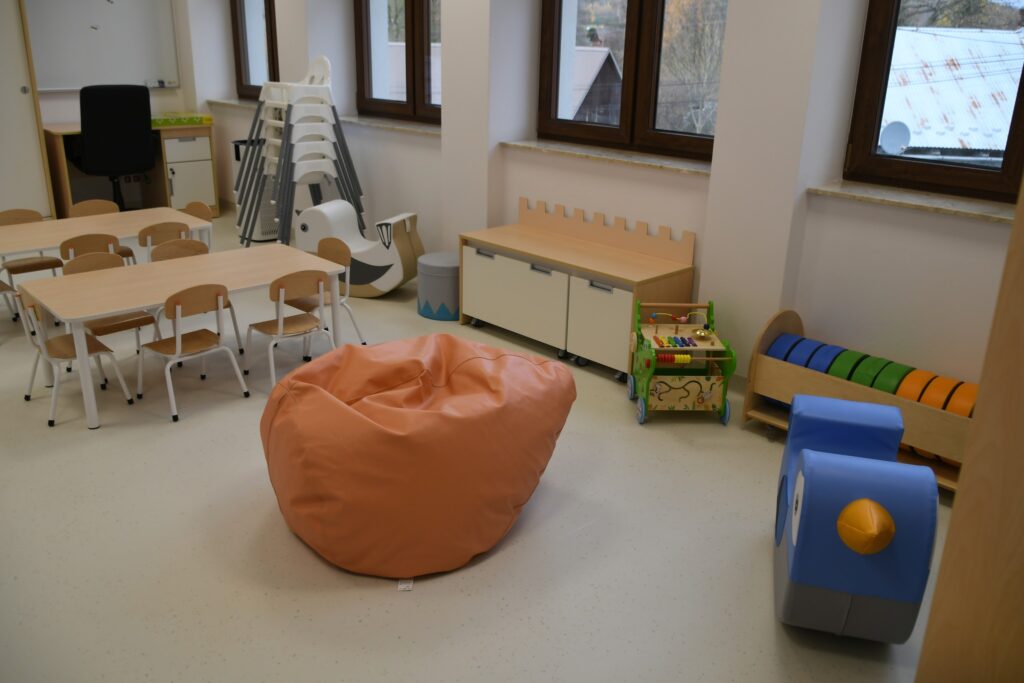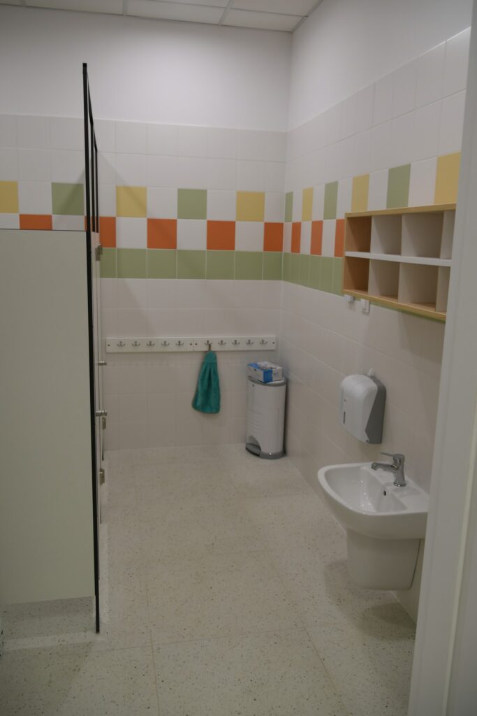 Inwestycja obejmowała też montaż windy i przebudowę klatki schodowej. W ramach zadania zmodernizowano zaplecze sanitarne, dostosowując je w pełni do potrzeb osób z niepełnosprawnościami. Dawne sale lekcyjne przekształcono w sale żłobkowe z własnymi sanitariatami.