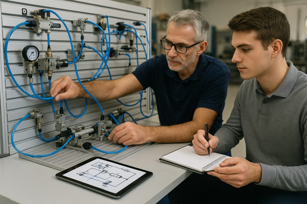 Pierwsza z nich zostanie poświęcona sterownikom PLC i napędom elektrycznym, stanowiącym fundament nowoczesnej automatyki przemysłowej. Druga – automatyce budynkowej, czyli inteligentnym systemom zarządzania energią i bezpieczeństwem w obiektach. Trzecia pracownia dedykowana będzie automatyce przemysłowej i robotyce, gdzie uczestnicy poznają zasady programowania robotów i integracji z liniami technologicznymi. Czwarta posłuży ćwiczeniom z zakresu pneumatyki i hydrauliki przemysłowej, a piąta –komputerowemu wspomaganiu projektowania i produkcji.