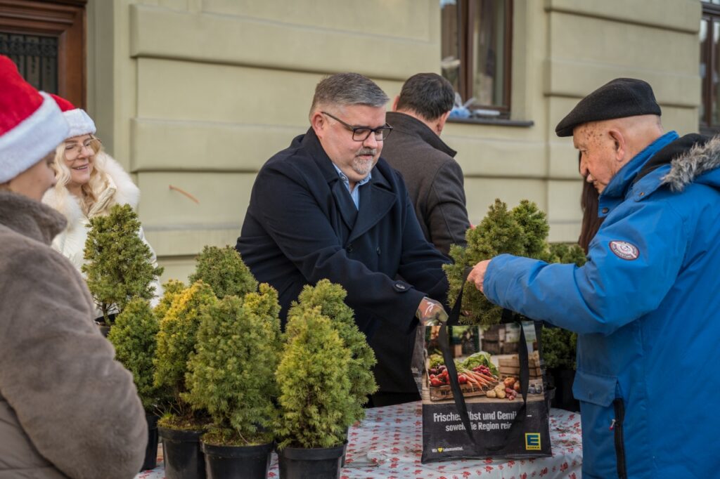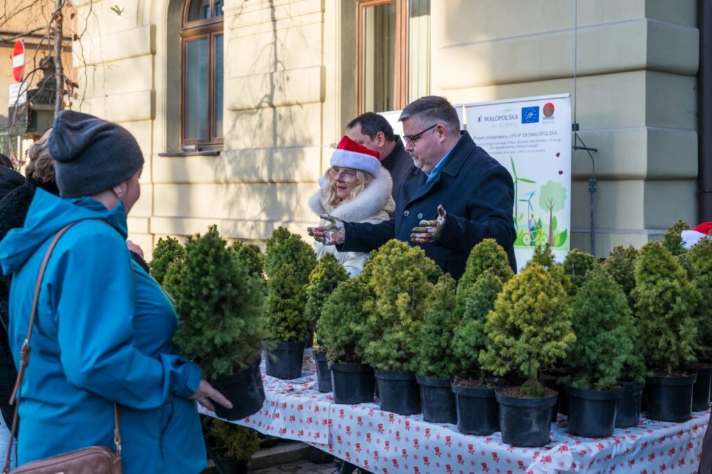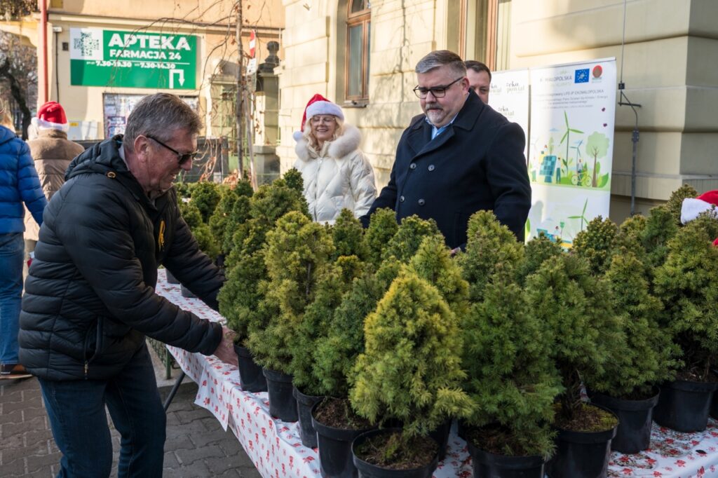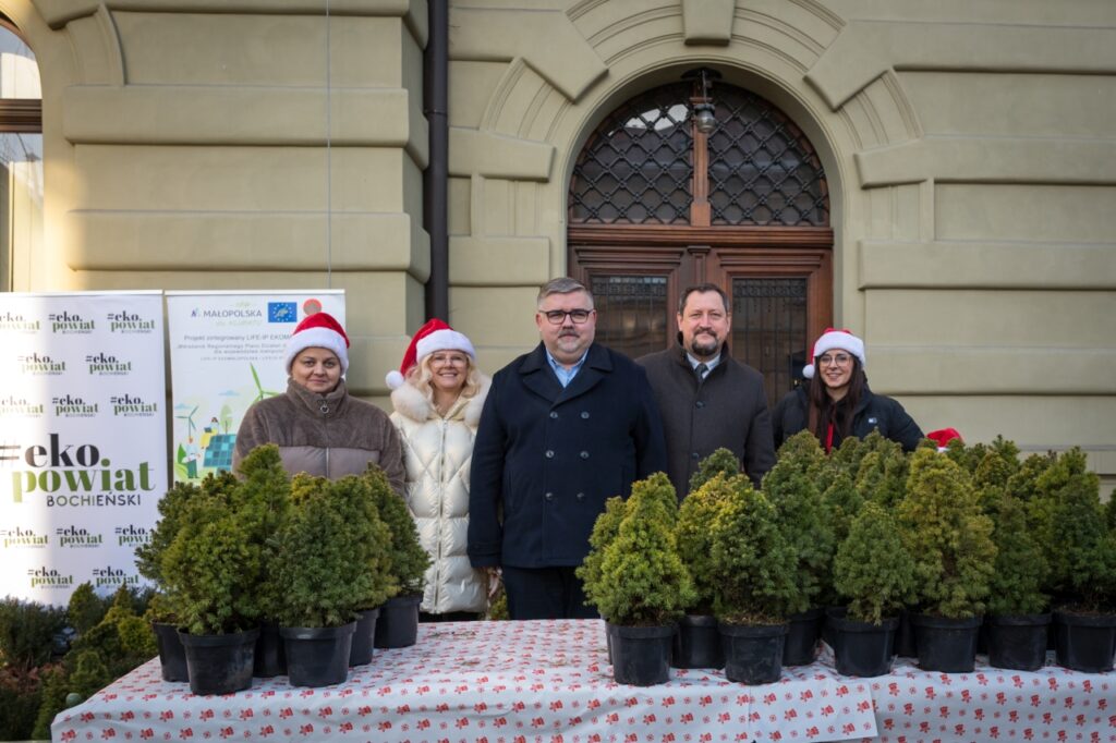 Sporym zainteresowaniem cieszyła się akcja „Naturalne, nie plastikowe – świąteczne drzewko od Starosty” zorganizowana dziś przed budynkiem bocheńskiego Starostwa Powiatowego. W zamian za makulaturę przedstawiciele powiatu rozdawali świąteczne drzewka.
