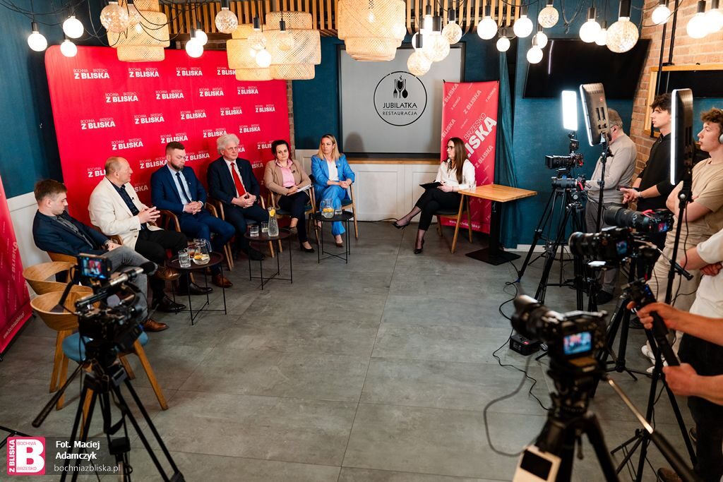 Czy Bochnia przyspieszyła? To pierwsze pytanie, które usłyszeli uczestnicy debaty POROZMAWIAJMY O BOCHNI, którą zorganizował Portal Bochnia z Bliska. Pytanie nawiązywało do hasła wyborczego burmistrz Magdaleny Łacnej. Do rozmowy na temat realizacji obietnic wyborczych, miejskich inwestycji, pozyskiwania funduszy zewnętrznych, zmiany firmy obsługującej odbiór odpadów komunalnych, polityki kadrowej magistratu i wizerunku Bochni – zaprosiliśmy przedstawicieli wszystkich środowisk, które weszły do Rady Miasta Bochnia w kwietniu 2024 roku. Debatę zorganizowaliśmy w Restauracji „Jubilatka”.